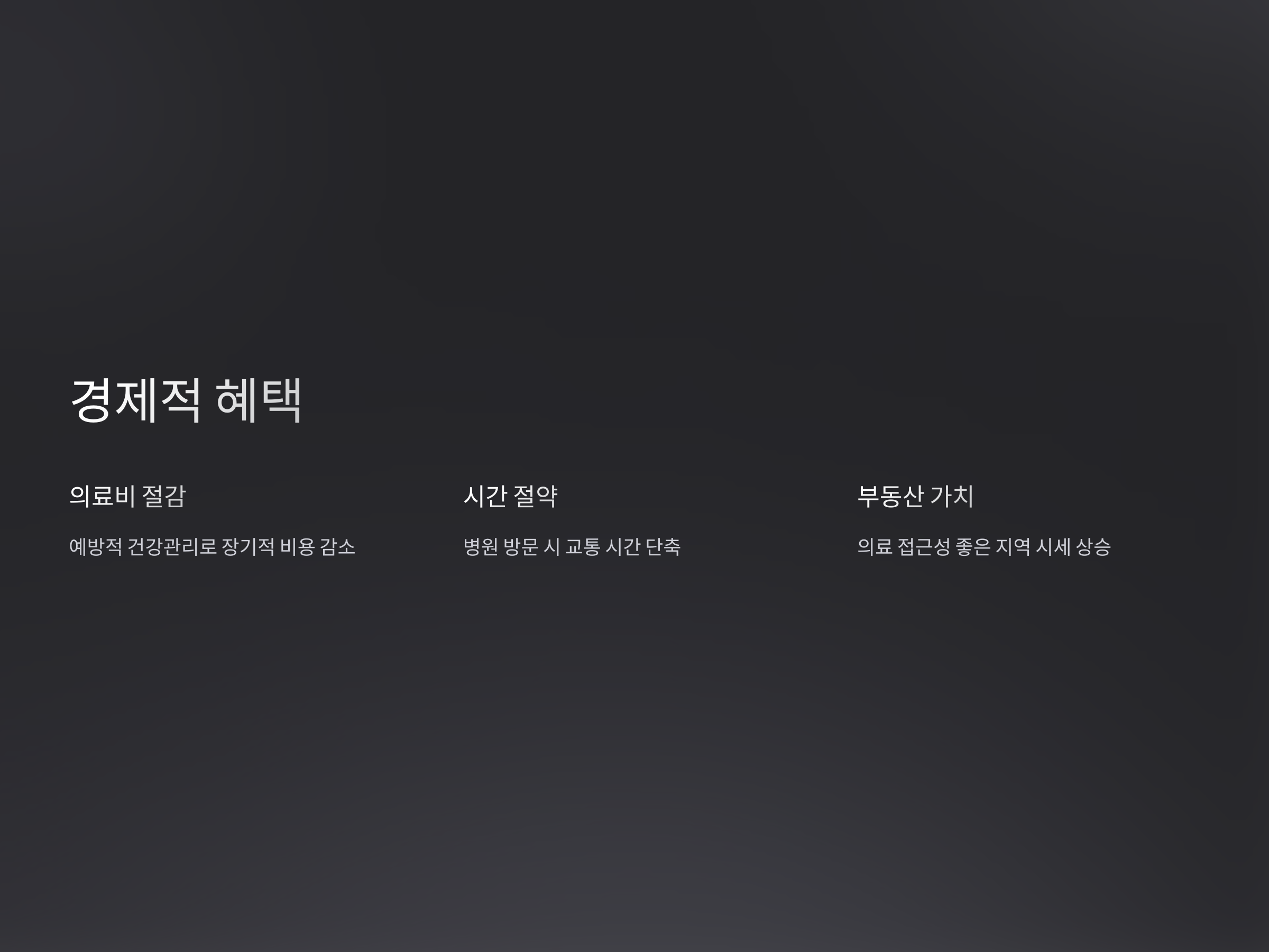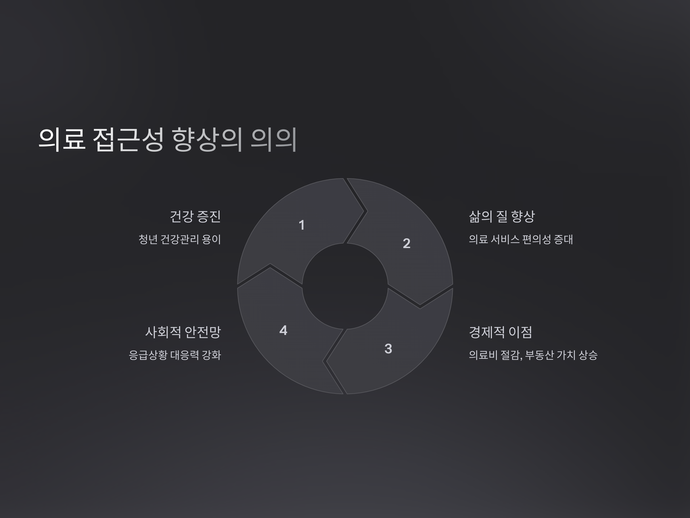 - 건강 관리로 인한 경제적 비용 절감: 청년들이 병원에 쉽게 접근할 수 있으면 건강 문제를 미리 예방할 수 있어 장기적인 의료비 절감 효과를 볼 수 있습니다. 또한, 병원에 가는 데 드는 교통비나 시간을 절약할 수 있습니다.