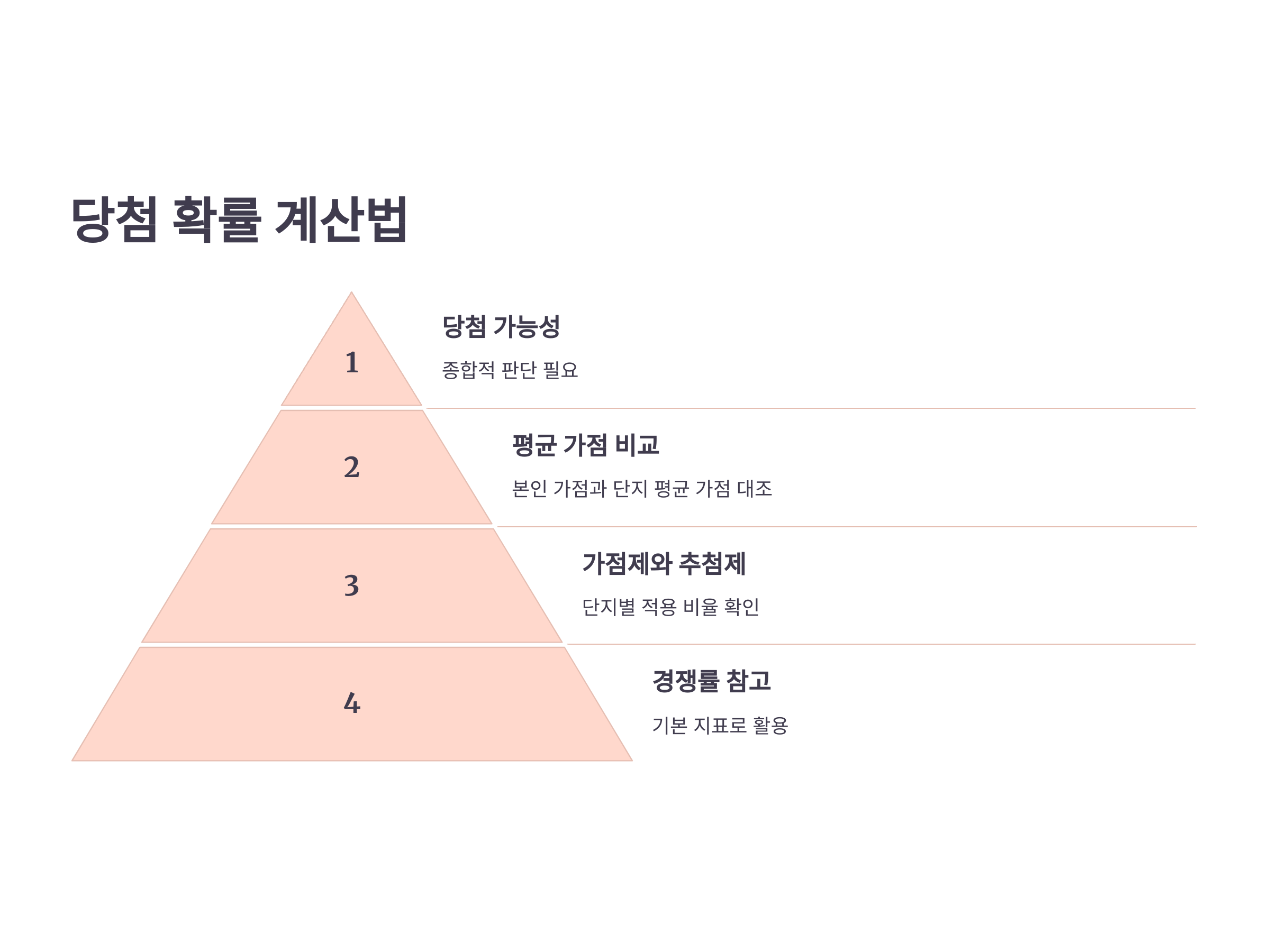 경쟁률이 높으면 당첨이 어렵고, 낮으면 쉬울까요? 꼭 그렇지만은 않습니다. 경쟁률은 참고 자료일 뿐, 가점제, 추첨제 등 다양한 요소가 복합적으로 작용하기 때문입니다. 특히 가점제 비율이 높은 단지라면 경쟁률보다는 평균 가점이 더 중요할 수 있습니다.