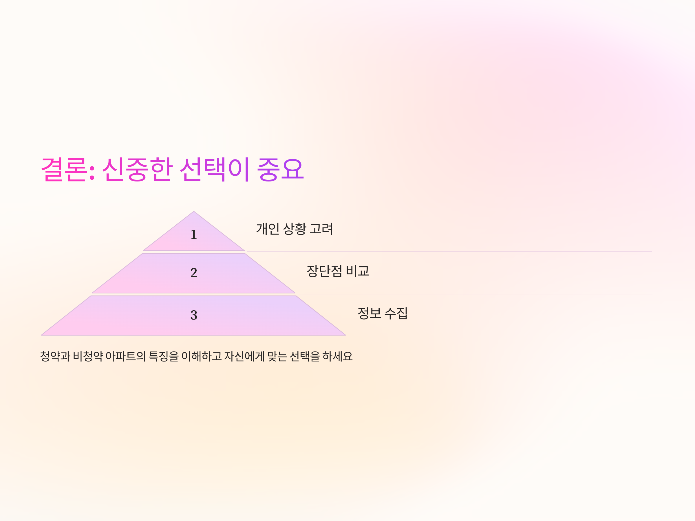 청약과 비청약 아파트 분양에 대해 충분히 이해한 후, 자신에게 맞는 아파트를 선택하는 것이 중요합니다. 각자의 상황에 맞춰 선택할 수 있는 다양한 옵션을 고려해보세요.