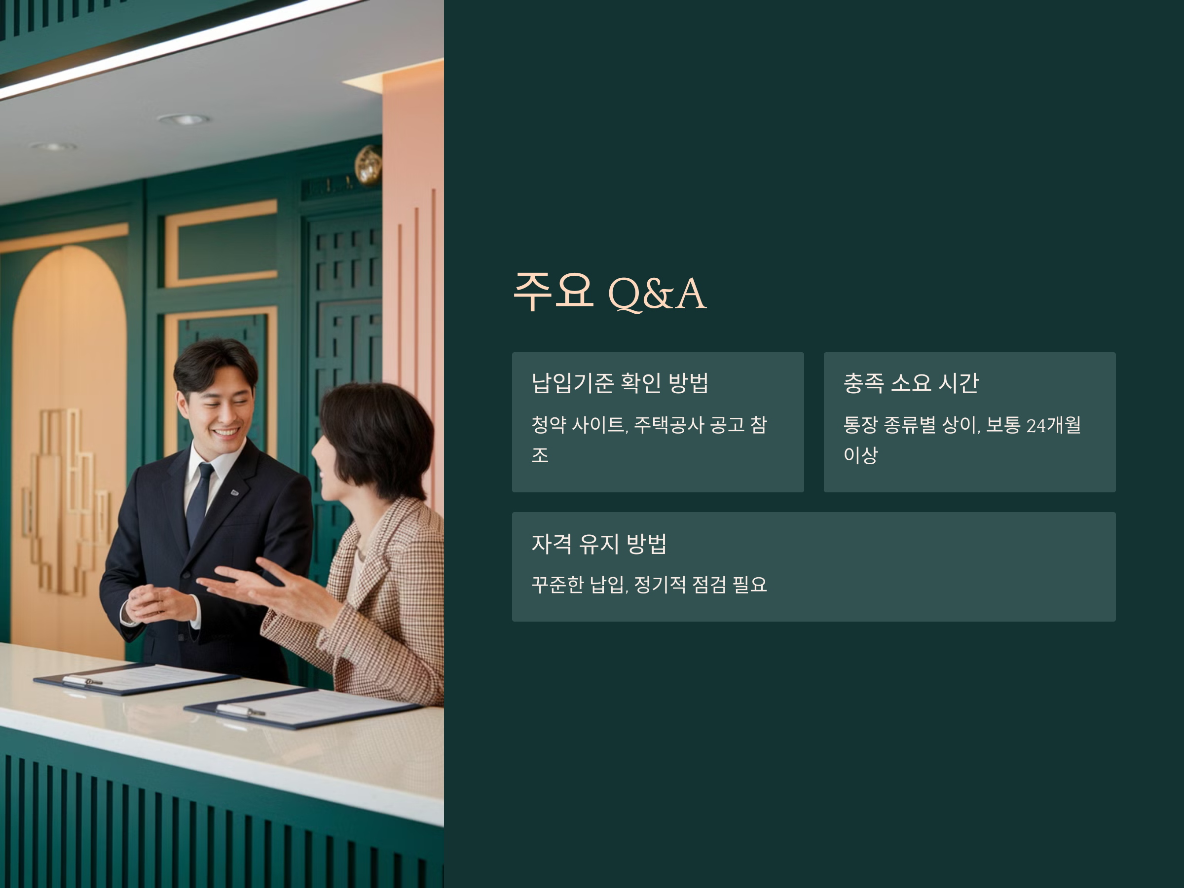 청약통장에 일정 금액이 적립된 후에도 자격을 얻지 못했다고 생각될 수 있습니다. 하지만 실제로는 납입인정기준을 충족하지 못한 경우가 있을 수 있으므로, 주기적으로 납입금액과 납입횟수를 점검하는 것이 중요합니다.