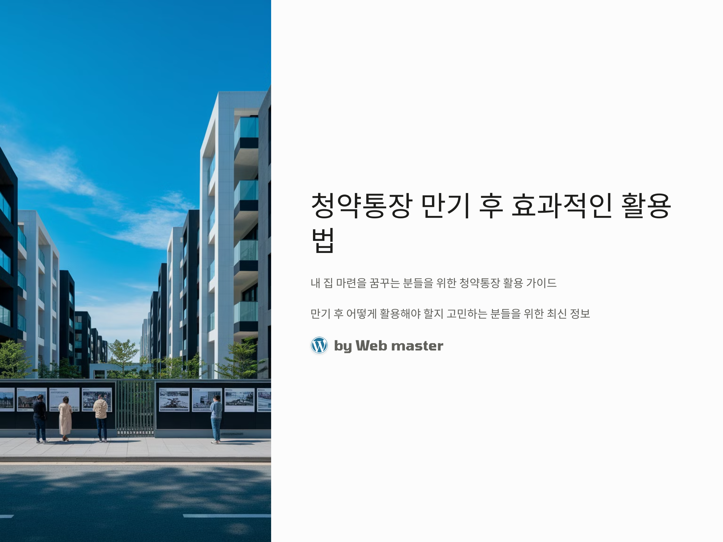 주택청약통장은 내 집 마련을 꿈꾸는 많은 사람들에게 필수적인 금융상품입니다. 하지만 만기 후 어떻게 활용해야 할지 몰라 고민하는 분들이 많습니다. 최근에는 청약 제도가 변화하면서 통장 활용법도 달라지고 있습니다. 이 글에서는 청약통장 만기 후의 효과적인 활용법과 최신 정보를 통해 미래의 주택 구매 전략을 제시하겠습니다.