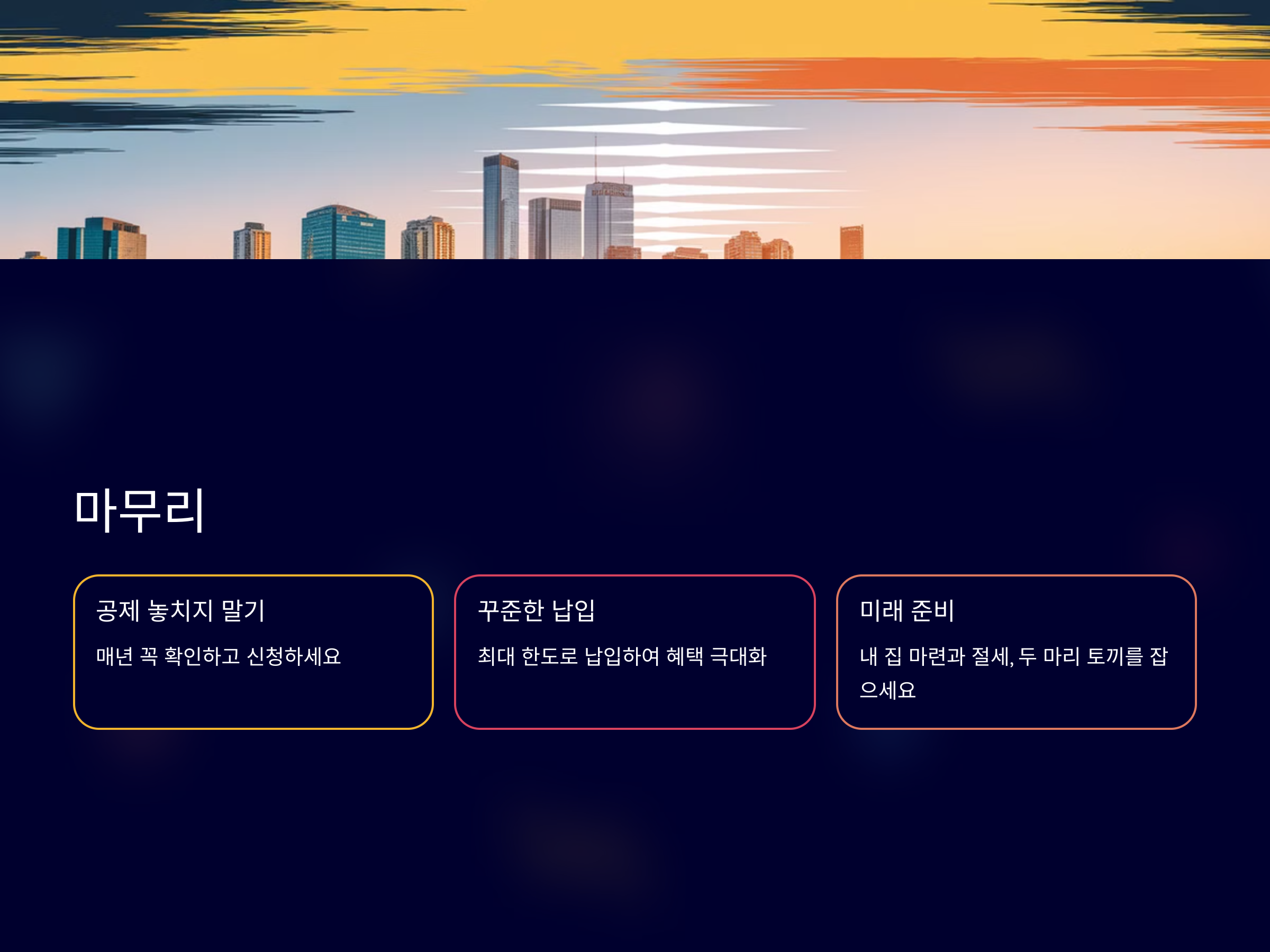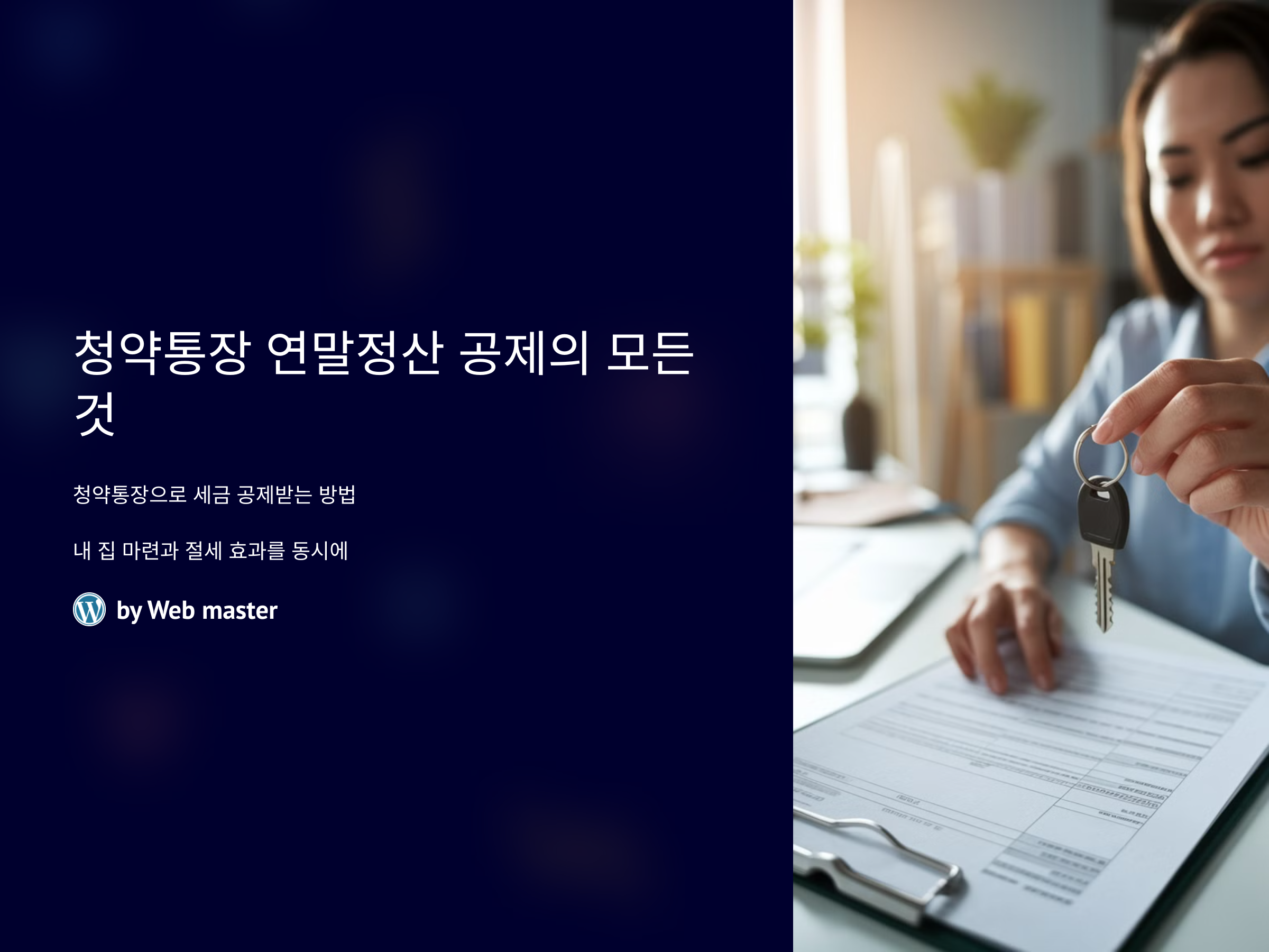 청약통장 공제를 최대한 활용하면 세금 부담을 줄이고, 내 집 마련을 위한 발판을 다질 수 있습니다. 내년 연말정산에서 놓치지 않도록, 매년 꾸준히 납입하고 증명서를 제출하는 것을 잊지 마세요.