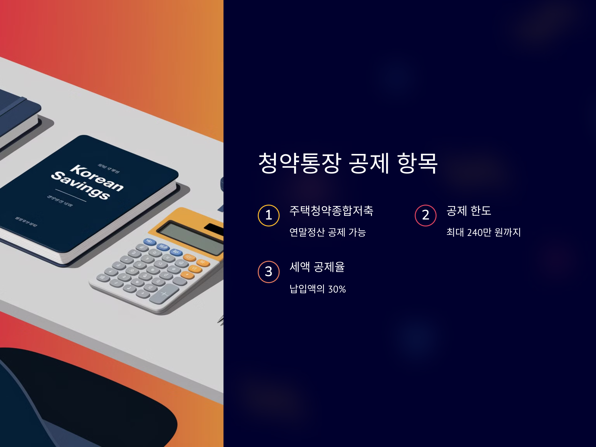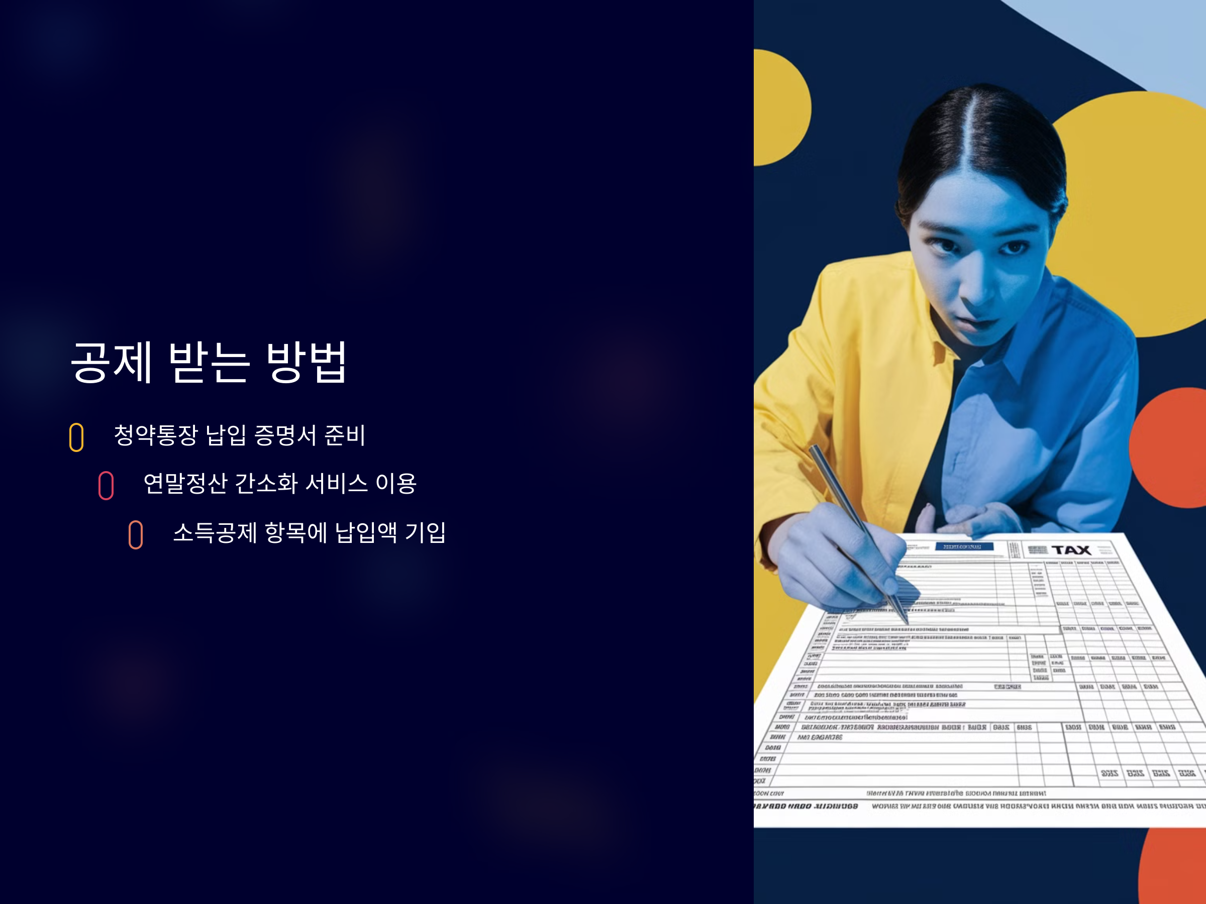 연말정산 때 청약통장 공제를 놓치지 않도록 매년 납입 증명서를 체크하고, 이를 공제 항목에 반영하는 것을 습관화하세요.
