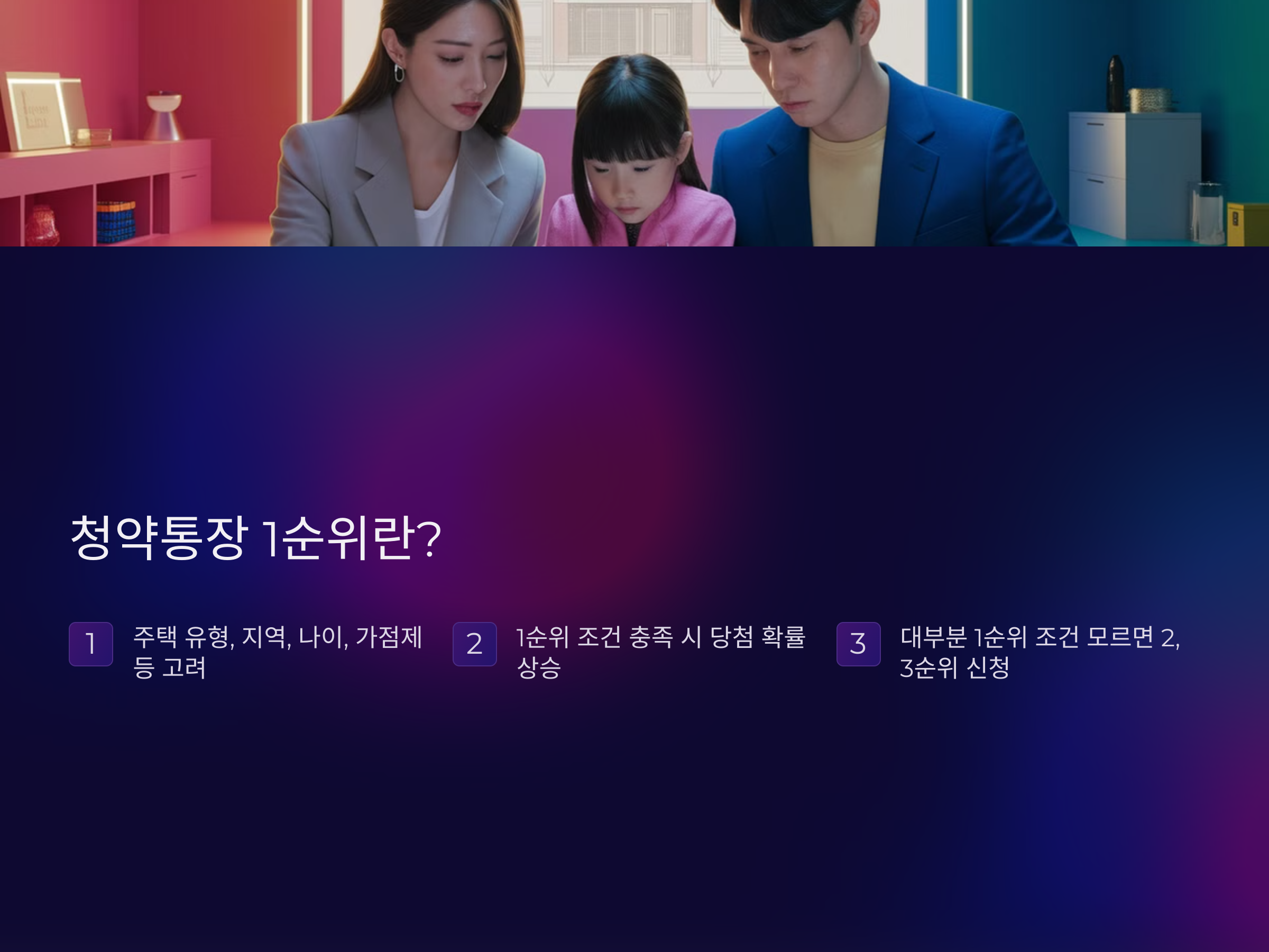 1순위 조건을 충족하는 경우, 청약 신청을 할 때 다른 경쟁자들보다 유리한 위치에 설 수 있습니다. 대부분의 사람들이 1순위 조건을 모르면 2순위나 3순위에 신청하게 되므로, 당첨 확률이 확실히 낮아지게 됩니다.