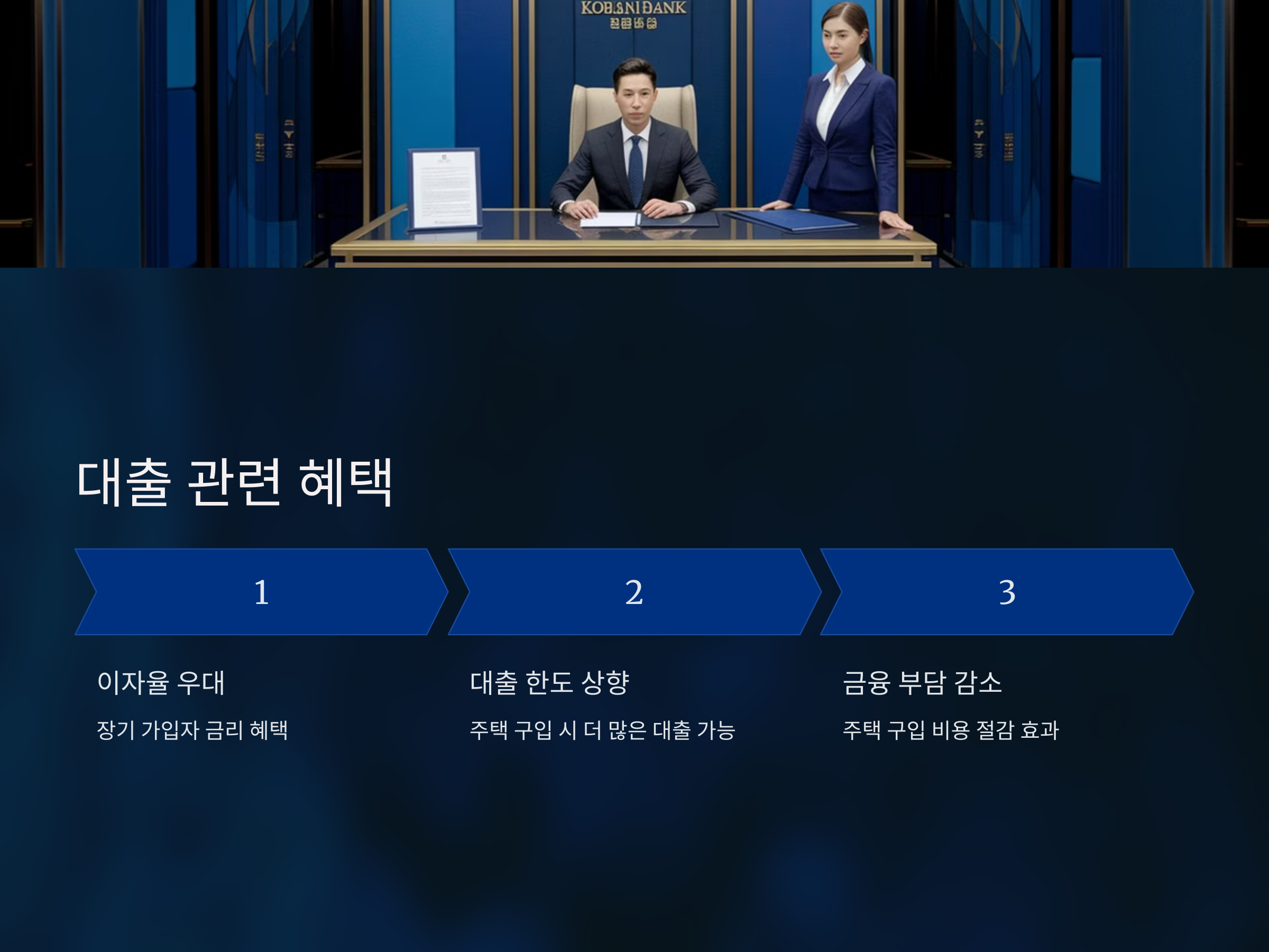 청약통장을 5년 이상 유지하면 주택 구입 시 대출 이자율 우대 및 대출 한도 상향 등의 금융 혜택을 받을 수 있습니다. 예를 들어, 일부 은행에서는 장기 가입자에게 우대 금리를 적용하거나, 대출 한도를 늘려주는 상품을 제공하고 있습니다. 이는 주택 구입 시 금융 부담을 줄이는 데 큰 도움이 됩니다. citeturn0search1