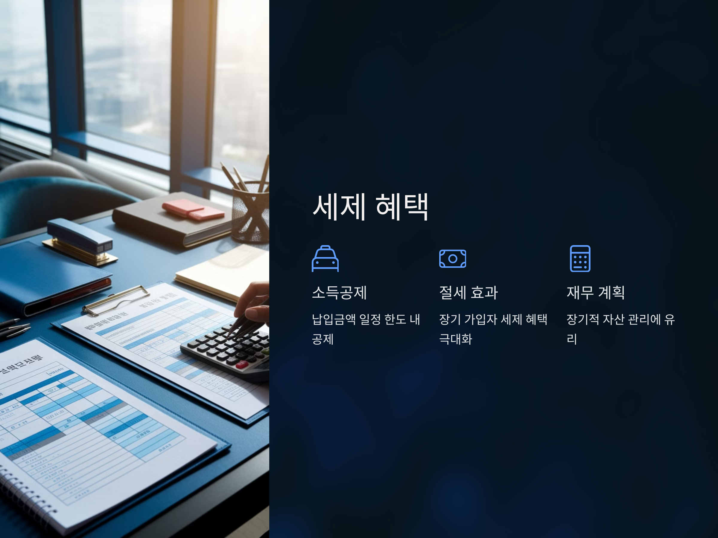 청약통장에 납입한 금액은 일정 한도 내에서 소득공제를 받을 수 있습니다. 특히, 장기 가입자는 이러한 세제 혜택을 꾸준히 누릴 수 있어, 절세 효과를 극대화할 수 있습니다. 이는 장기적인 재무 계획 수립에 유리하게 작용합니다. citeturn0search5