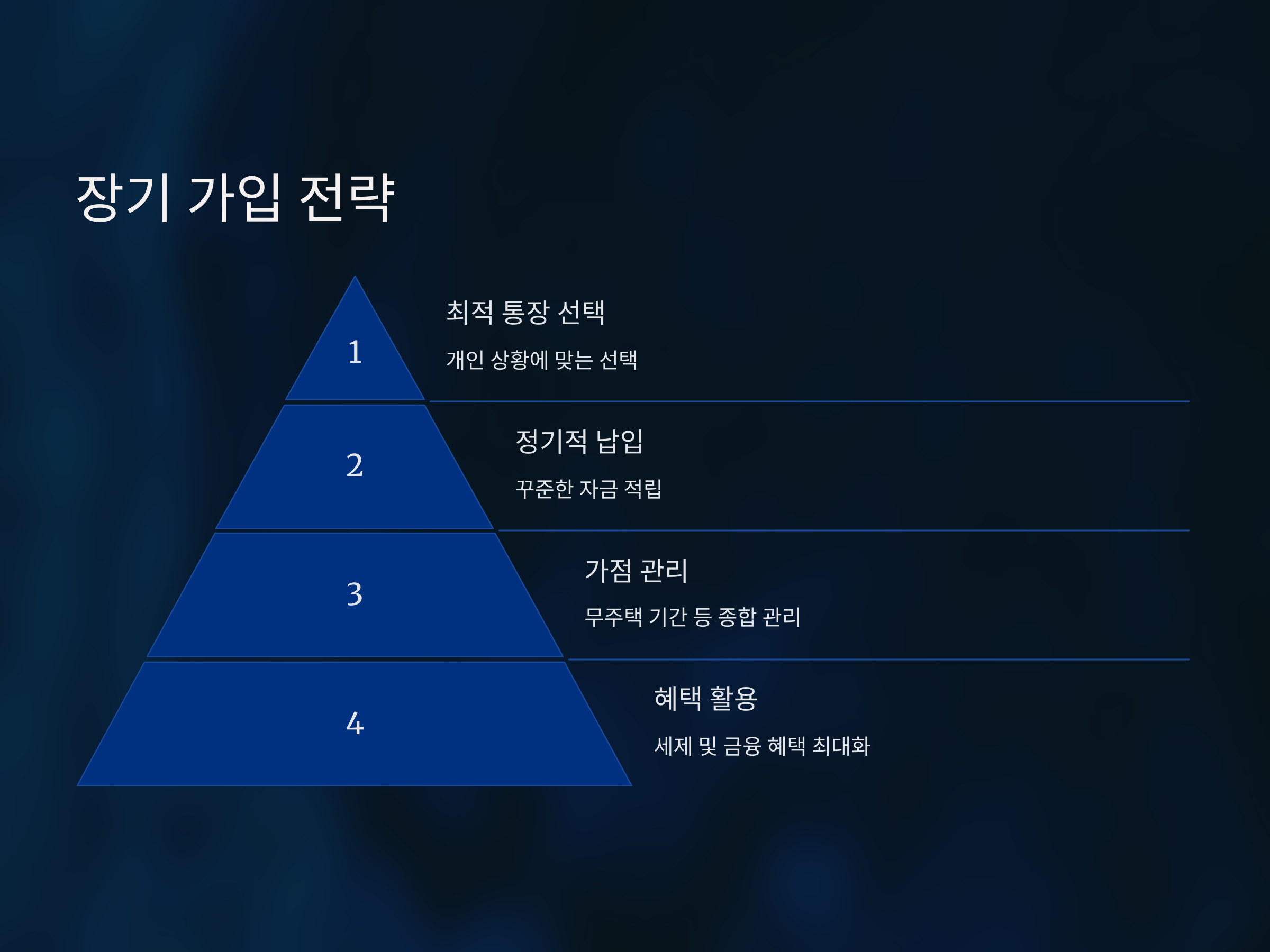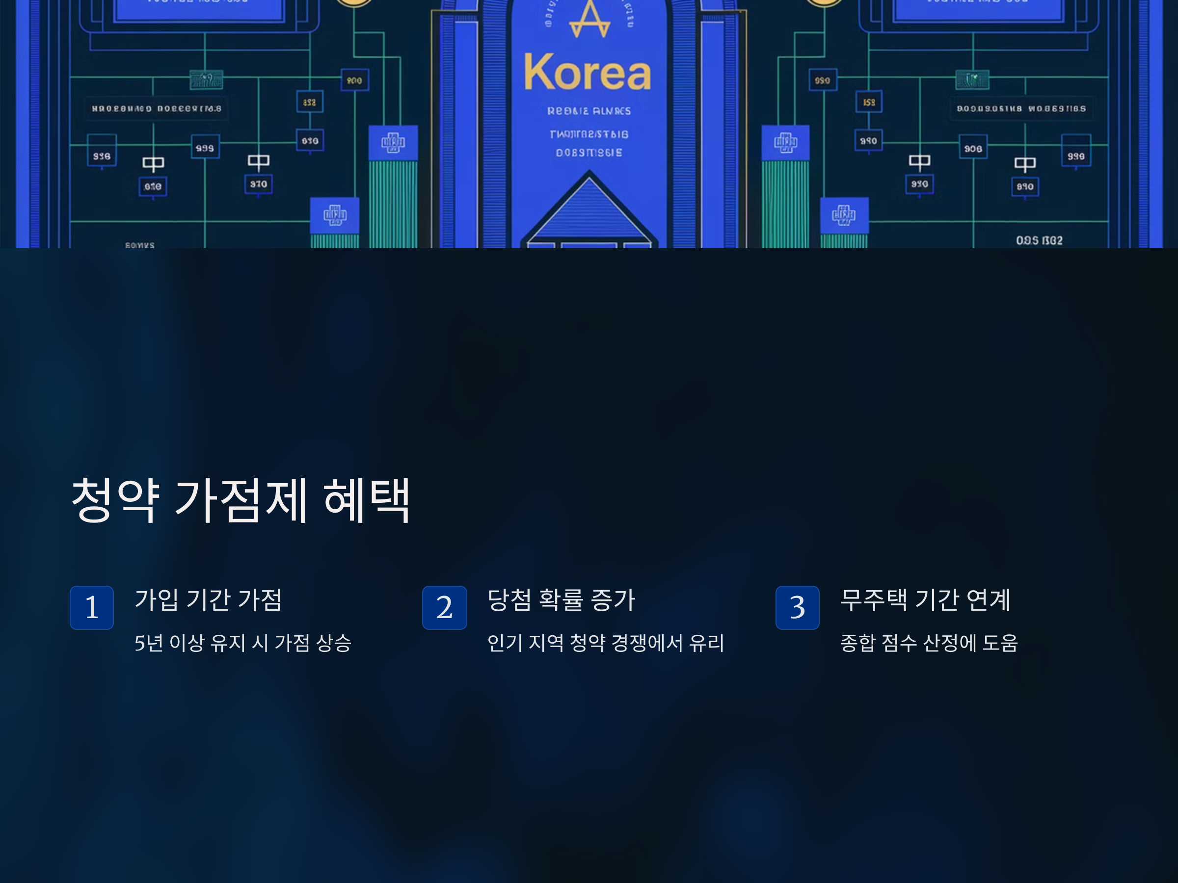 청약 가점제는 무주택 기간, 부양가족 수, 청약통장 가입 기간 등을 종합하여 점수를 산정합니다. 특히, 청약통장을 5년 이상 유지하면 가입 기간에 따른 가점에서 유리한 위치를 차지할 수 있습니다. 이는 경쟁이 치열한 인기 지역의 청약에서 당첨 확률을 높이는 데 큰 도움이 됩니다. citeturn0search3