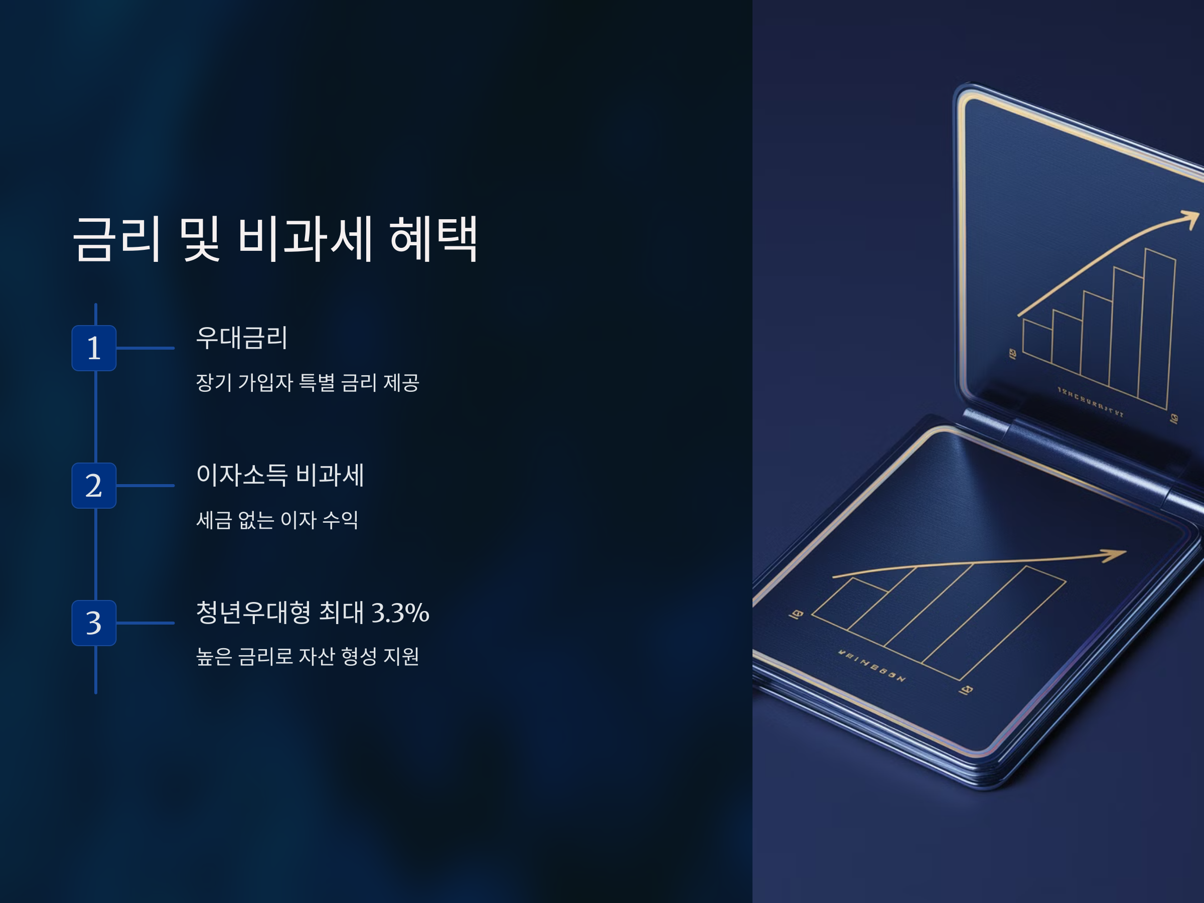 일부 청약통장 상품은 장기 가입자에게 우대금리를 제공하며, 이자소득에 대한 비과세 혜택도 부여합니다. 예를 들어, 청년우대형 청약통장은 최대 3.3%의 금리 혜택과 함께 이자소득 비과세 혜택을 제공합니다. 이는 장기 저축을 통한 자산 형성에 긍정적인 영향을 미칩니다. citeturn0search6