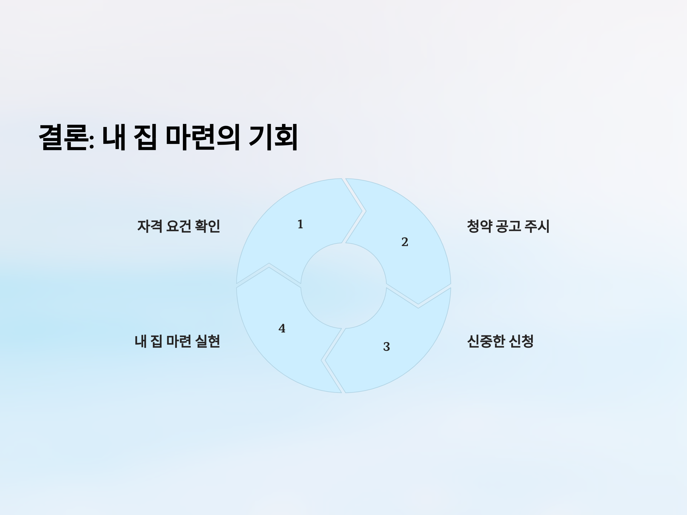 생애최초특별공급청약은 내 집 마련의 기회를 제공하는 중요한 제도입니다. 첫 집을 마련하려는 사람들에게 더 유리한 조건을 제공하며, 이를 통해 좀 더 쉽게 집을 구매할 수 있는 기회를 얻을 수 있습니다. 이 제도를 활용하려면 자격 요건과 절차를 잘 이해하고 준비하는 것이 중요합니다. 청약 공고와 자격 조건을 꼼꼼히 확인하고, 신중하게 신청해 보세요.