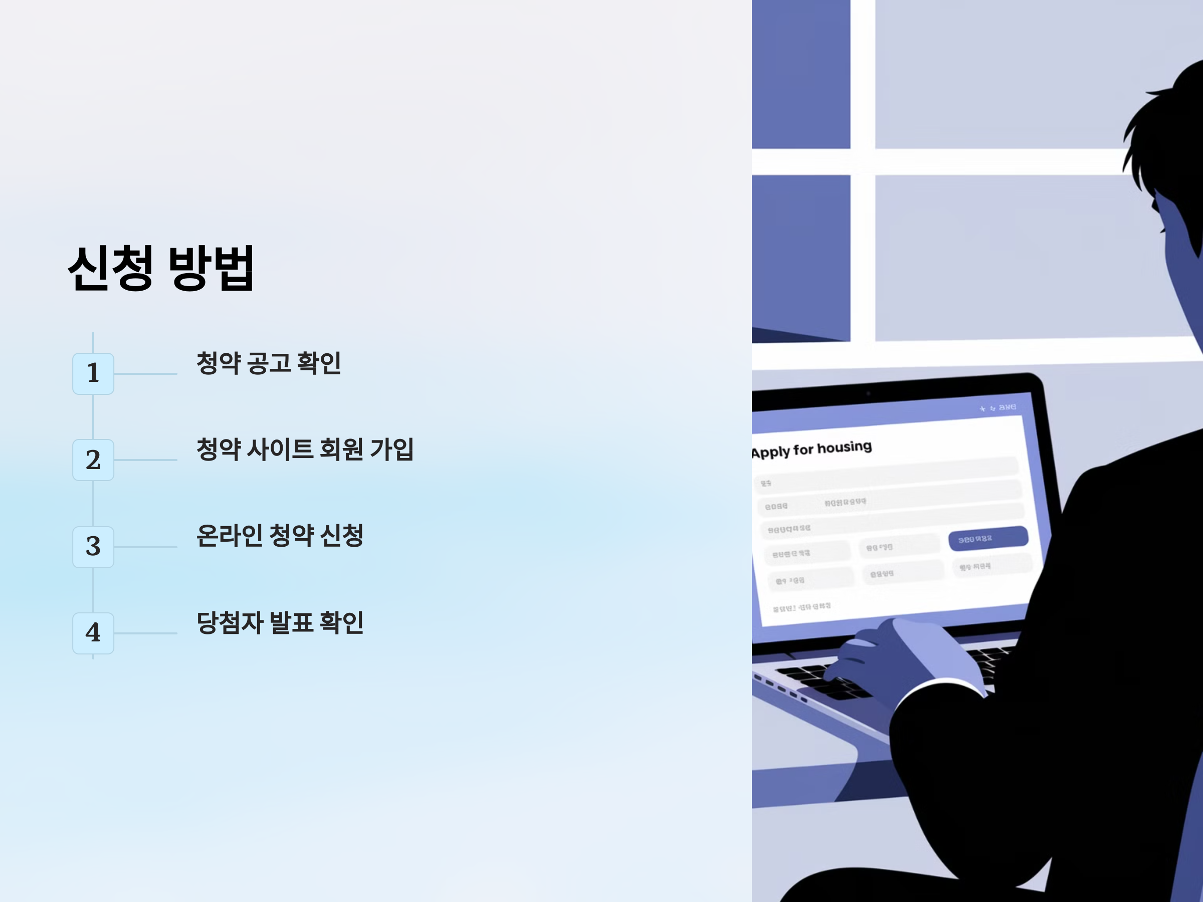 - 회원 가입: 청약 신청을 위해 청약 사이트에 회원 가입을 합니다.