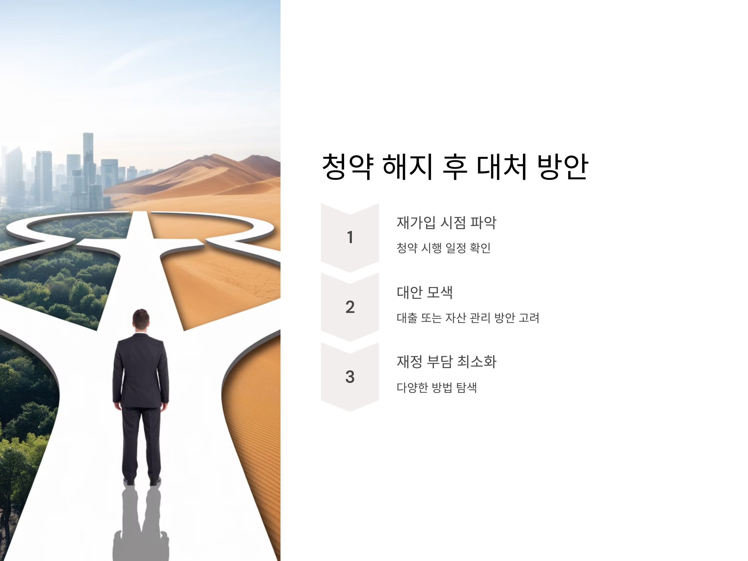 두 번째로, 해지 후에는 다른 형태의 재정적 대안을 고려하는 것도 좋은 방법입니다. 예를 들어, 대출을 통해 주택을 구입하거나, 다른 자산 관리 방안을 모색하는 것입니다. 이와 함께 청약을 해지한 후 재정적 부담을 덜 수 있는 방법을 찾아보는 것도 중요합니다.