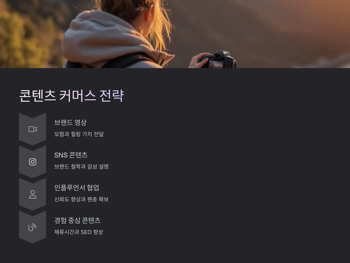 아웃도어 쇼핑몰은 단순히 제품을 판매하는 플랫폼이 아니라, 모험과 힐링의 가치를 전하는 공간이 되어야 합니다. 이를 위해선 SNS 콘텐츠, 브랜드 영상, 유튜브 브이로그, 제품 착용기 등 다채로운 콘텐츠가 필요합니다. 특히 캠핑 유튜버와의 협업, 인플루언서 마케팅은 신뢰도를 높이고, 팬층을 빠르게 확보할 수 있습니다. 콘텐츠 하나가 브랜드 철학과 감성을 설명하고, 이는 곧 구매로 이어집니다. SNS 광고의 클릭률이 낮아지고 있는 요즘, ‘경험 중심 콘텐츠’는 체류시간과 SEO 측면에서 더 우수한 결과를 보입니다.