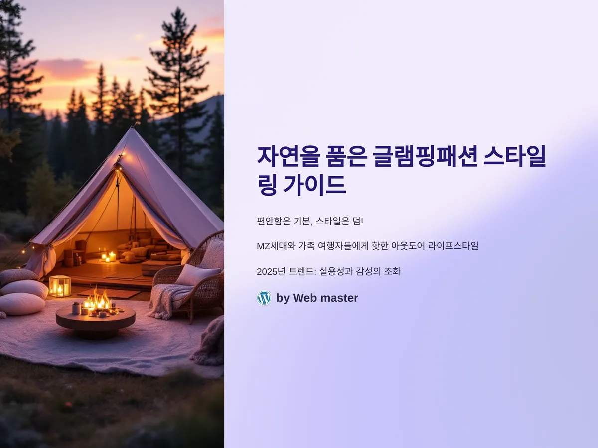 도심의 복잡함을 벗어나 자연 속에서 여유를 즐길 수 있는 글램핑은 요즘 MZ세대와 가족 단위 여행자들에게 가장 핫한 아웃도어 라이프스타일로 떠오르고 있습니다. 하지만 편안한 캠핑이라고 해서 패션을 포기할 필요는 없죠. 오히려 인스타그램, 유튜브 등 SNS에 올릴 한 컷의 사진을 위해서라도 감성 가득한 스타일링은 필수! 2025년 트렌드는 ‘실용성과 감성의 조화’로, 활동성을 고려한 기능성 아이템과 감각적인 레이어드 룩이 핵심입니다. 이번 글에서는 글램핑에 최적화된 스타일링 팁과 함께 실전 아이템 추천까지 총망라해 소개해 드립니다. 읽는 것만으로도 내일 당장 떠나고 싶어질 거예요.