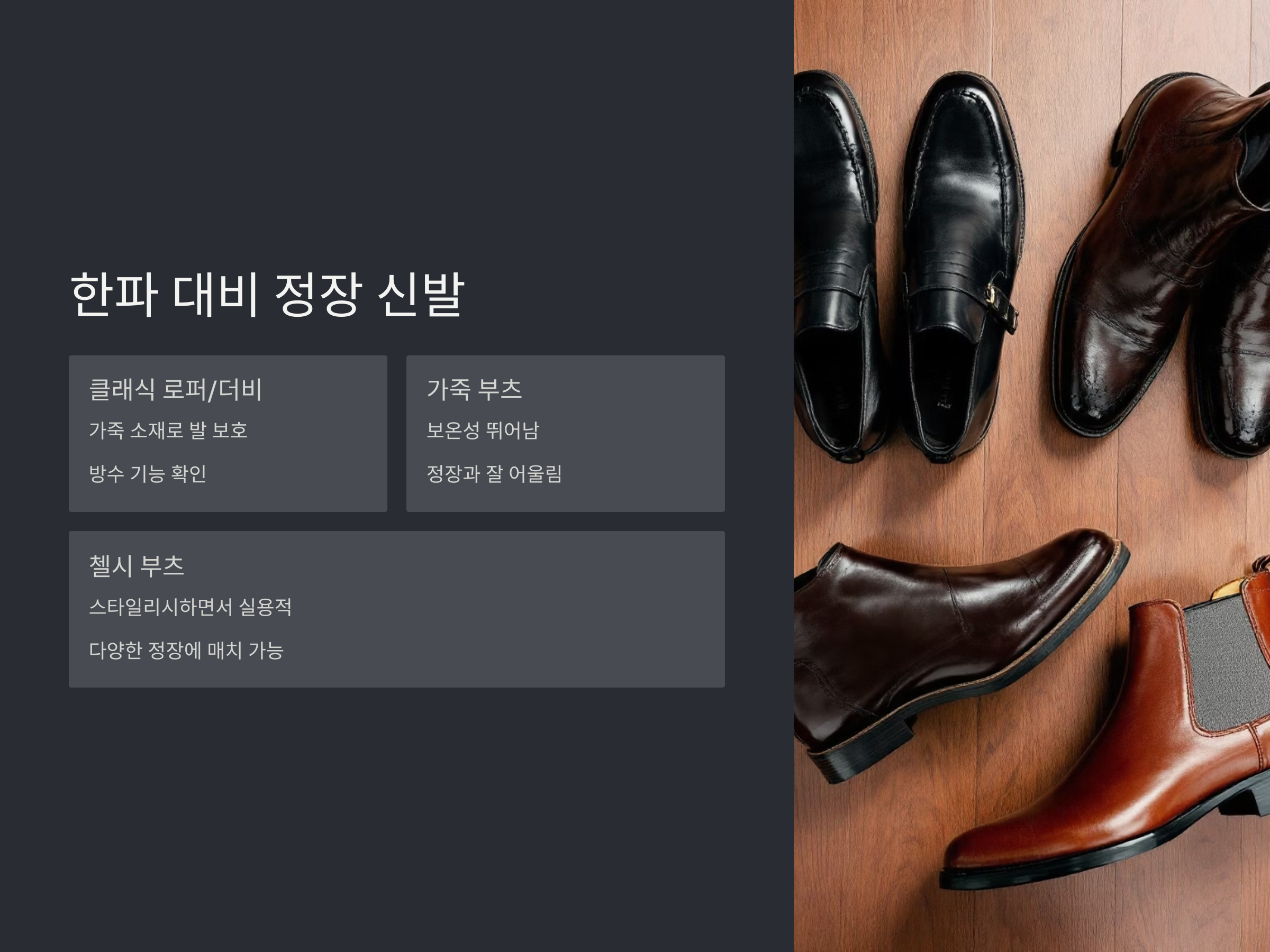 한파에도 스타일을 놓치지 않는 겨울철 정장 신발