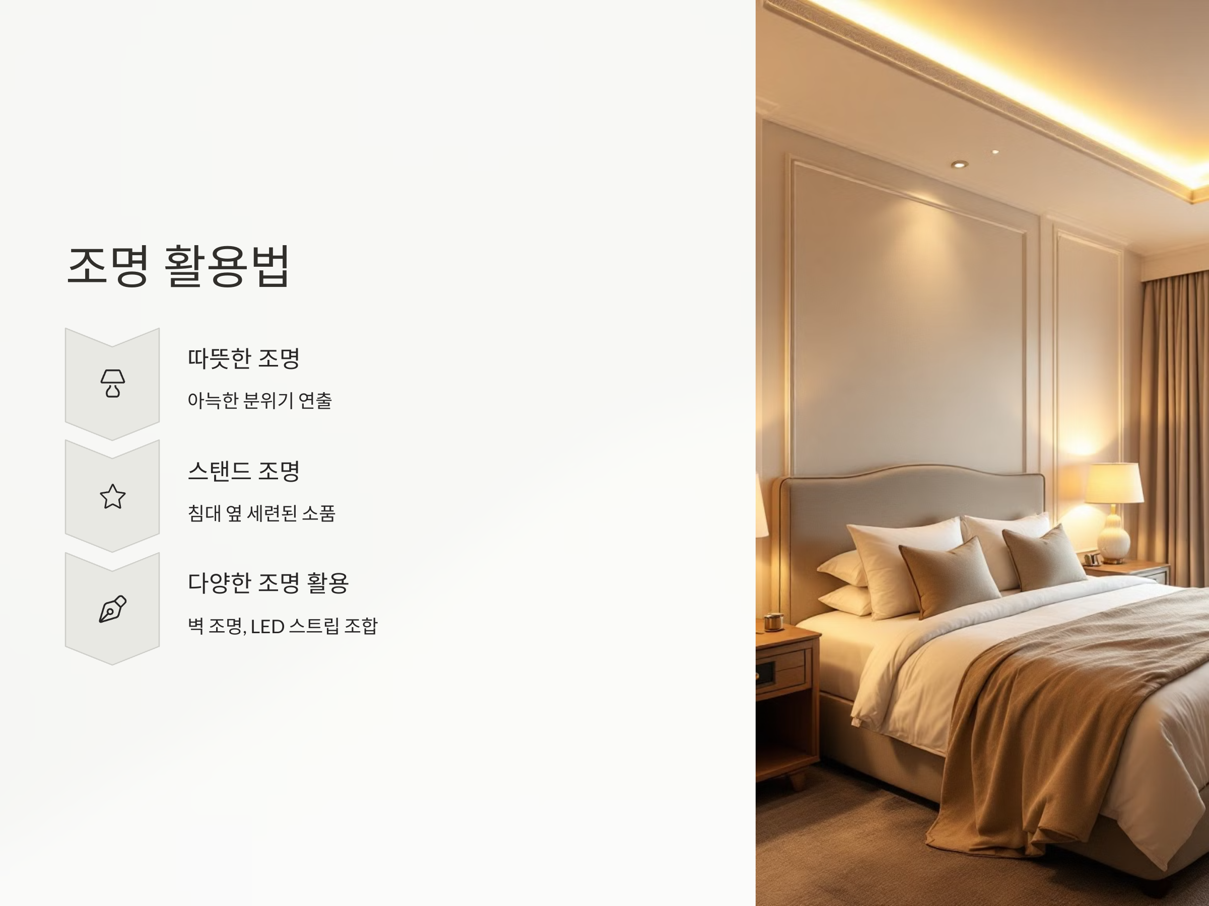 호텔식 침실을 위한 조명 활용법