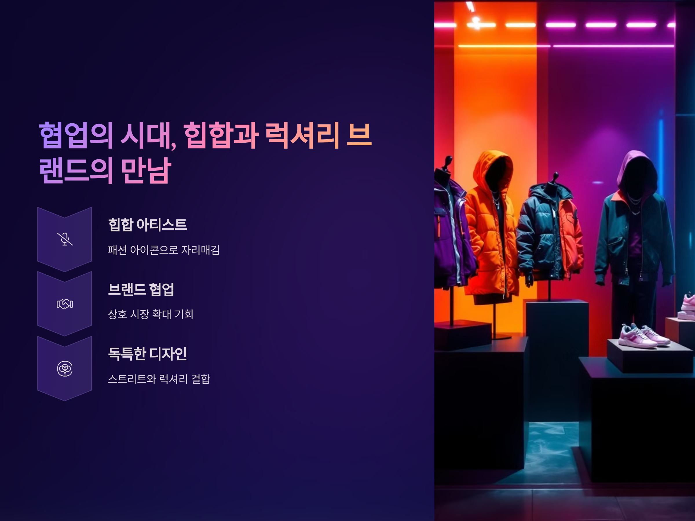 힙합 문화와 럭셔리 브랜드의 협업은 이제 하나의 중요한 트렌드로 자리잡았습니다. 2025년 박람회에서는 유명 힙합 아티스트와 럭셔리 브랜드 간의 협업 컬렉션들이 소개될 것입니다. 이러한 협업은 힙합 아티스트들이 패션 아이콘으로서의 입지를 더욱 공고히 할 수 있는 기회를 제공하며, 동시에 럭셔리 브랜드가 새로운 시장을 타겟으로 할 수 있는 기회를 만들어 줍니다. 이번 박람회에서는 힙합의 강렬한 스트리트 감성을 럭셔리 브랜드의 고급스러움과 결합한 독특한 디자인이 큰 주목을 받을 것입니다.