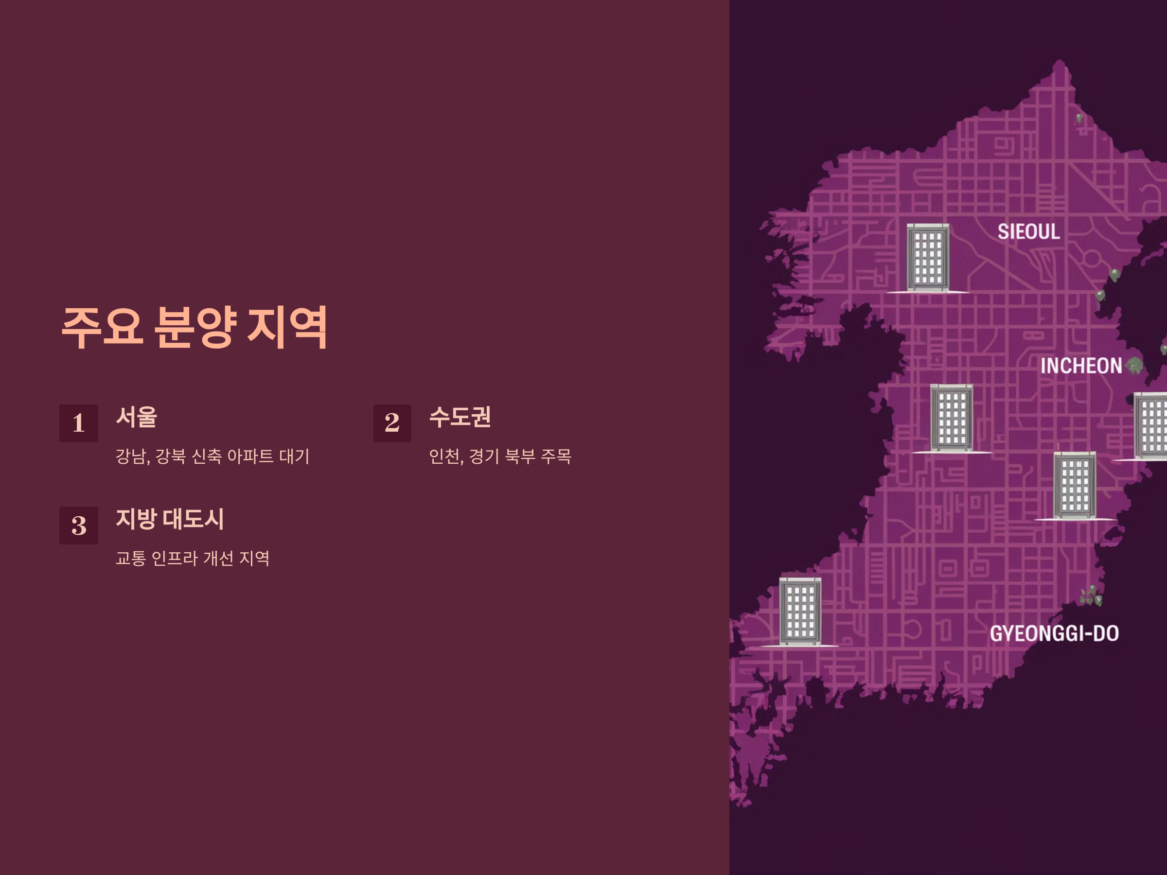2024년에 분양 예정인 아파트는 각 지역별로 차별화된 특성을 보입니다. 주요 지역으로는 서울, 수도권, 그리고 지방 대도시들이 있습니다. 특히 서울과 수도권은 여전히 많은 수요를 자랑하는 지역으로, 청약을 노리는 사람들이 많습니다. 이들 지역은 정부의 재개발, 재건축 사업이나 신규 택지 개발 등의 혜택이 있기 때문에 경쟁이 치열할 것으로 예상됩니다.
