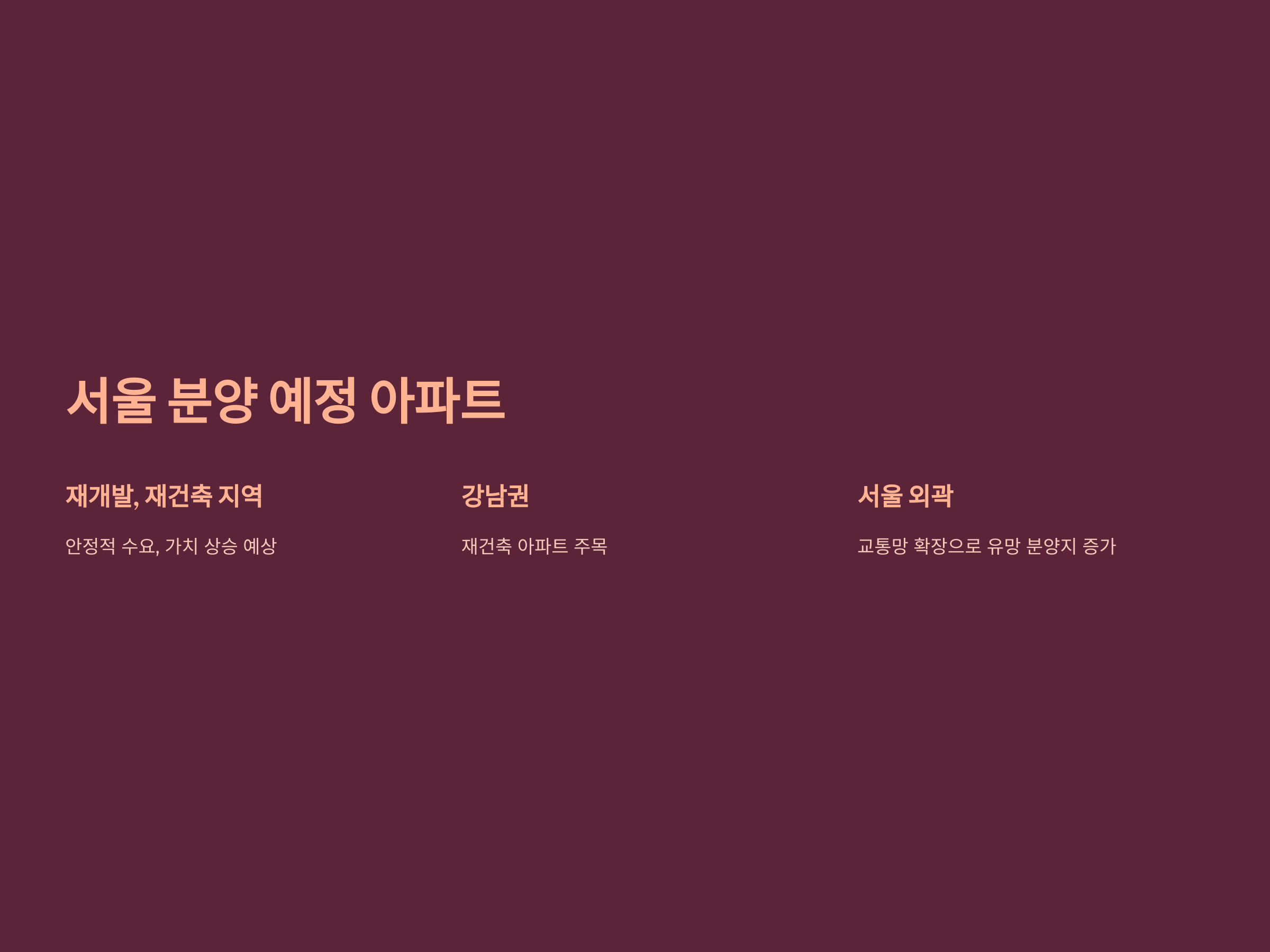 서울은 여전히 인기 있는 청약 지역입니다. 특히 재개발, 재건축 지역에서 분양 예정 아파트가 많아 주목을 받고 있습니다. 예를 들어, 강남권의 재건축 아파트는 안정적인 수요를 자랑하며, 향후 가치는 더욱 높아질 것으로 보입니다. 또한, 서울 외곽에서도 교통망 확장으로 인해 유망한 분양지들이 많이 나타나고 있습니다.