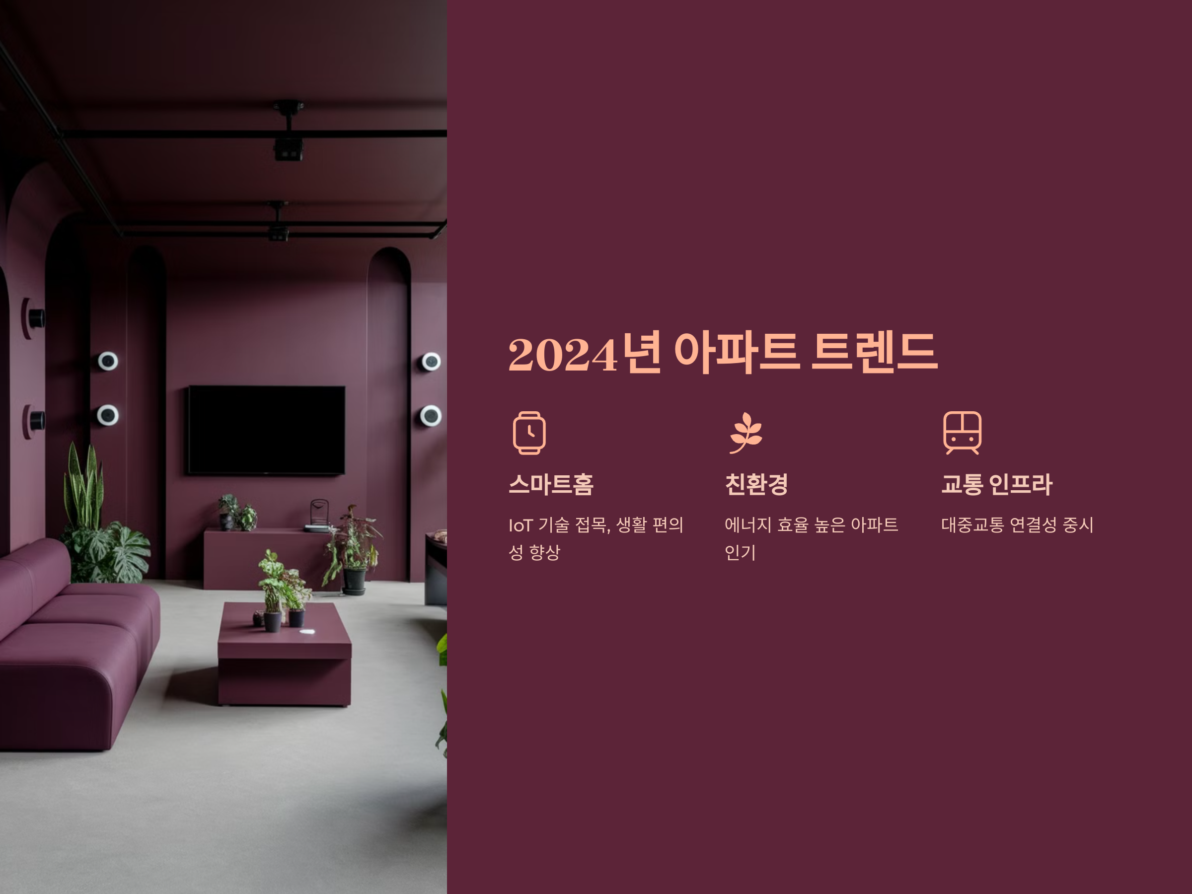 2024년 분양 예정 아파트의 중요한 트렌드 중 하나는 스마트홈 기술의 접목입니다. IoT 기술을 활용한 스마트홈 기능을 갖춘 아파트들이 등장하면서, 입주민의 생활 편의성을 높이는 방향으로 변화하고 있습니다. 또한, 친환경 아파트가 인기를 끌며, 에너지 효율이 높은 아파트들이 많은 수요를 얻을 것으로 보입니다.
