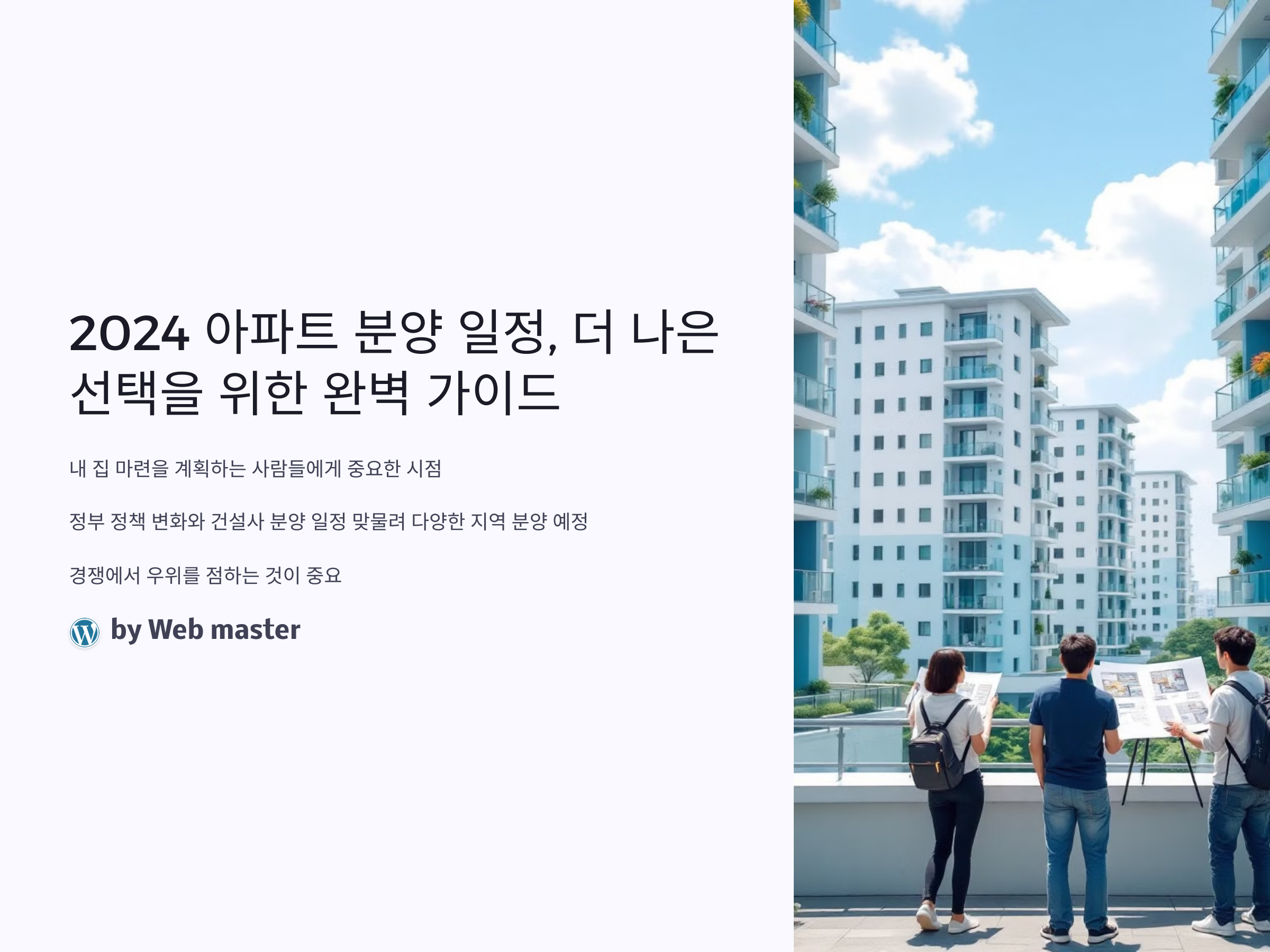 이번 글에서는 2024년 아파트 분양 일정에 대한 전반적인 정보와 함께, 인기 지역의 분양 일정과 분양 전략에 대해서도 다룰 것입니다. 특히, 아파트 분양의 흐름을 파악하고, 보다 유리한 조건으로 분양을 받는 방법에 대해서도 알아보겠습니다.