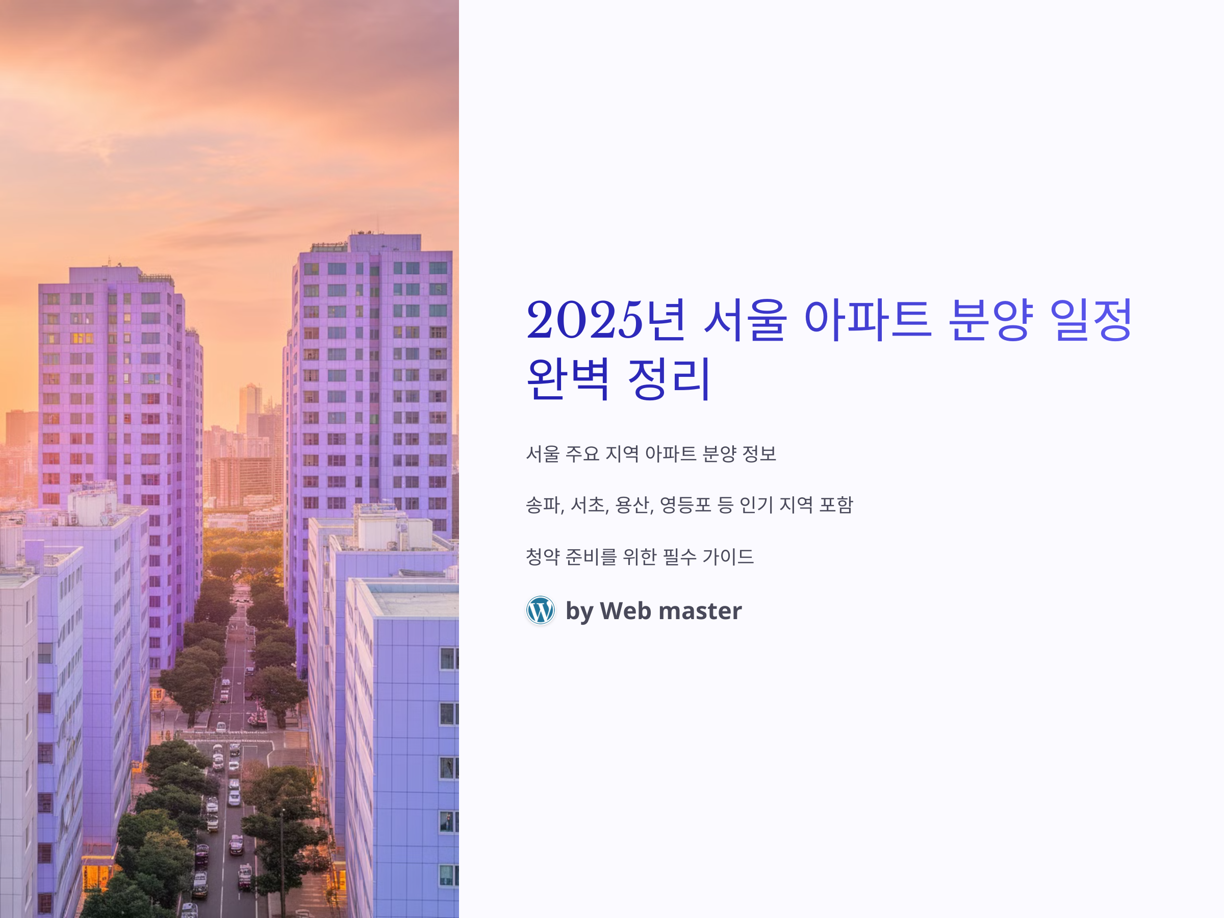 여기서는 2025년에 분양될 서울 아파트들을 지역별로 정리하여 소개합니다. 분양 일정과 함께 아파트 규모, 위치, 시공사 정보까지 확인할 수 있습니다.