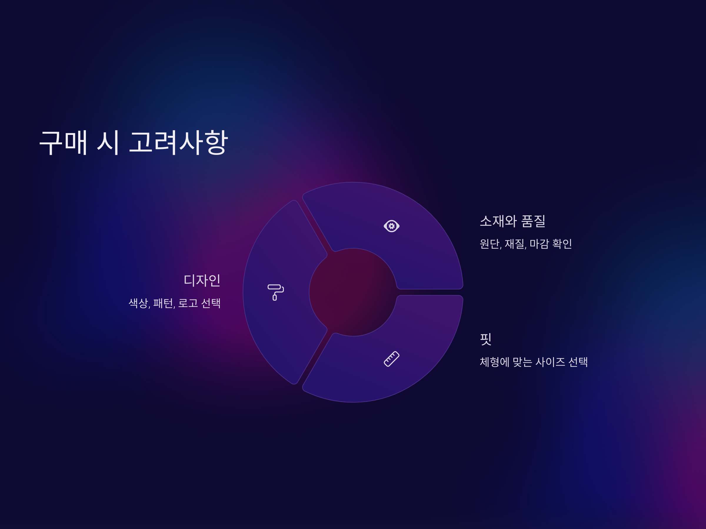 이 색상들은 30대가 원하는 고급스러움과 편안함을 동시에 충족시켜 줄 수 있습니다. 색상 조합은 심플하면서도 트렌디하게, 여러 아이템을 믹스앤매치할 수 있는 유용한 요소로 작용할 것입니다.