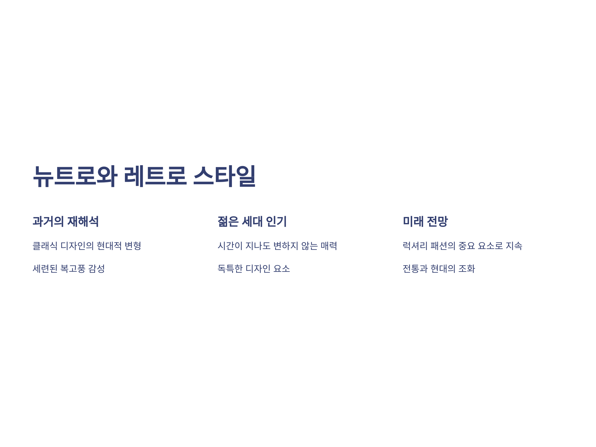 뉴트로와 레트로 스타일은 앞으로도 럭셔리 패션에서 계속해서 중요한 역할을 할 것입니다. 과거의 전통을 현대적으로 풀어낸 디자인은 시간이 지나도 변하지 않는 매력을 지니고 있습니다.