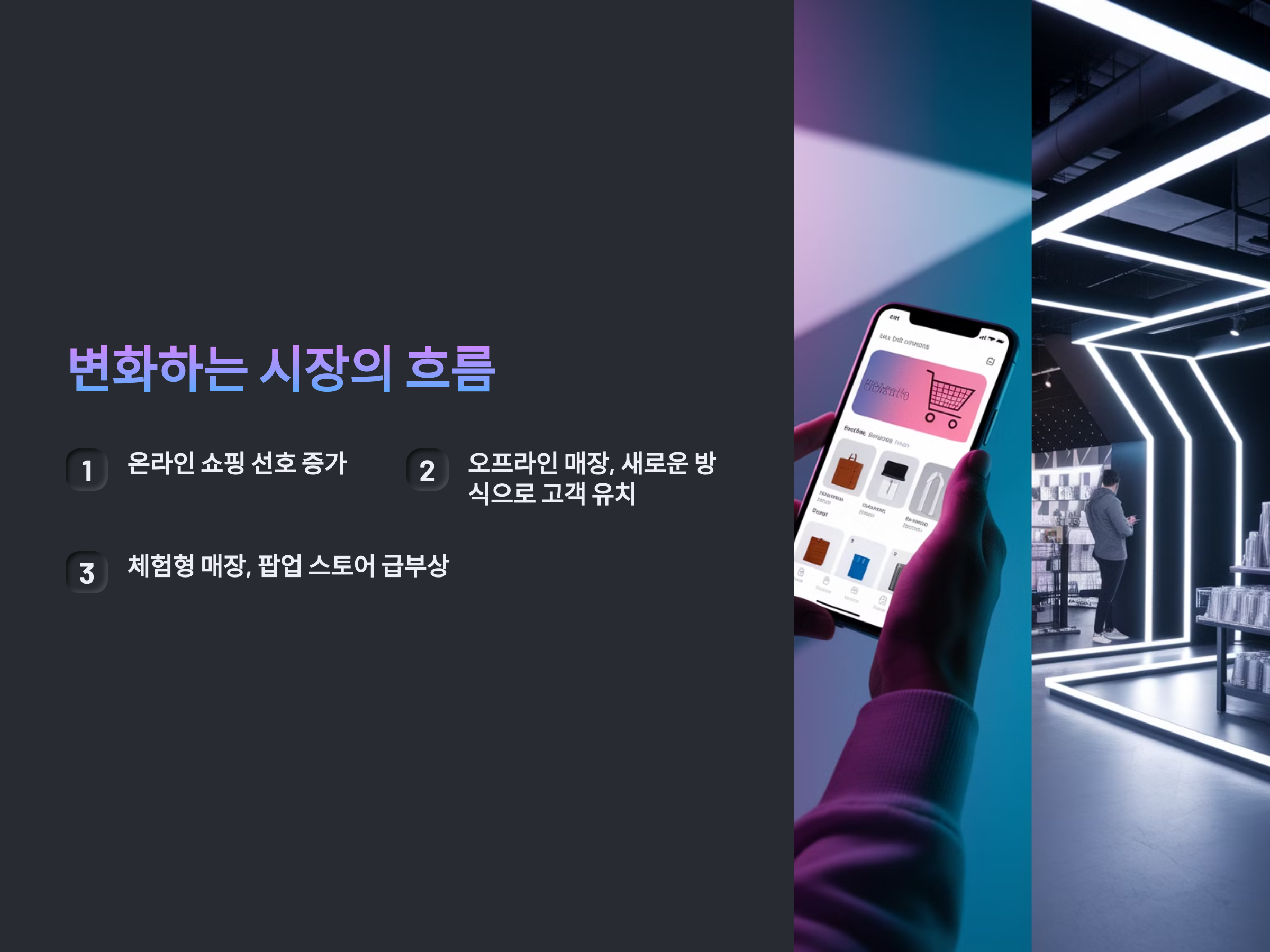 팝업스토어는 기간 한정으로 운영되는 임시 매장으로, 특정 시즌이나 이벤트와 연계된 마케팅 전략을 통해 큰 인기를 끌고 있습니다. 패션 업계에서 시작된 팝업스토어는 이제 다양한 산업으로 확산되었습니다. 예를 들어, 특정 브랜드가 한정판 제품을 선보이는 팝업스토어를 열면, 소비자들의 관심이 집중되어 빠르게 매출을 올릴 수 있습니다. 또한, 팝업스토어는 고객들에게 색다른 경험을 제공하는 동시에, 브랜드 인지도를 높이는 데 큰 역할을 합니다.