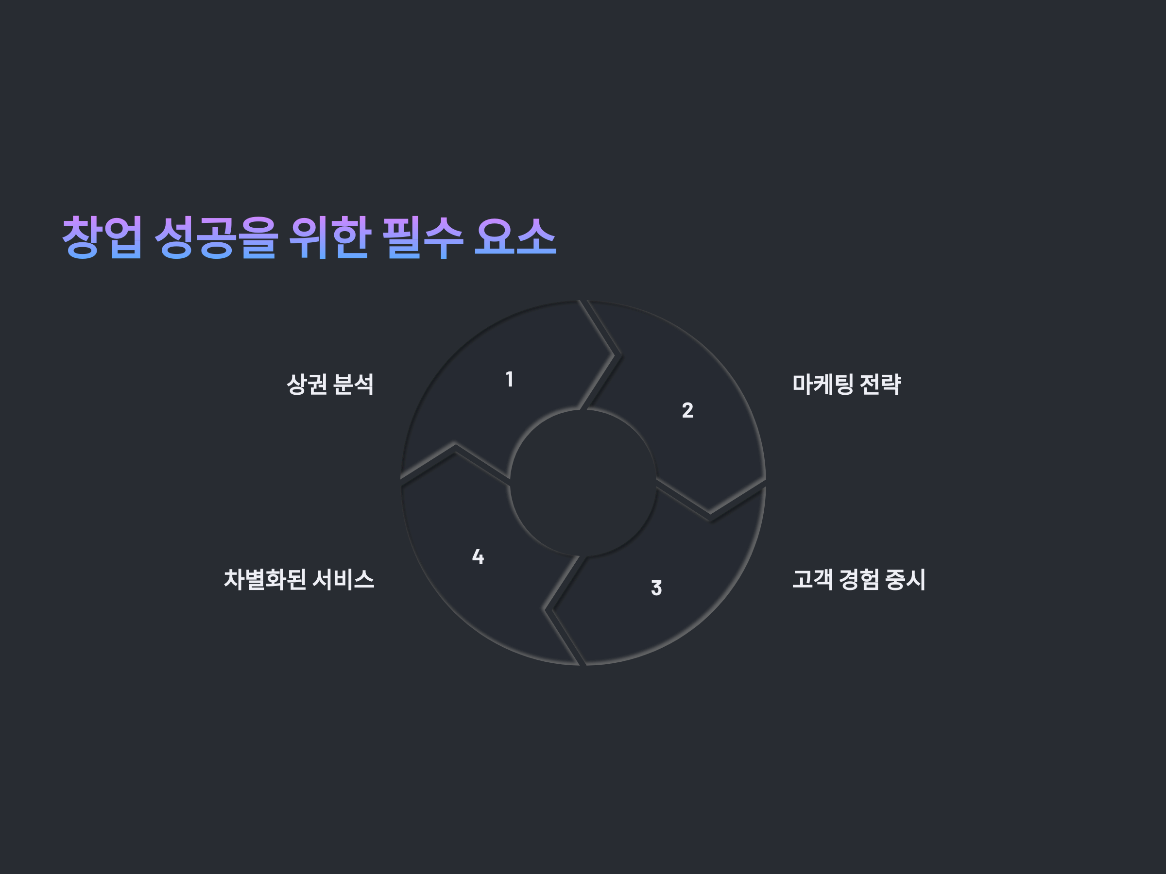 상가 창업에서 가장 중요한 요소는 상권 분석과 마케팅 전략입니다. 상권을 잘 분석하여 소비자층에 맞는 창업 아이템을 선택하고, 효과적인 마케팅 전략을 통해 브랜드 인지도를 높이는 것이 성공적인 창업으로 이어집니다.