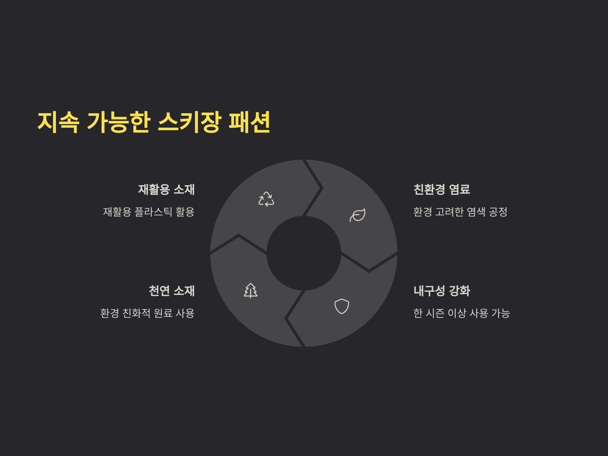 2025년 스키장 패션의 또 다른 큰 트렌드는 지속 가능성입니다. 많은 스키복 브랜드가 환경을 고려한 소재와 공정을 채택하고 있습니다. 재활용된 플라스틱, 친환경적인 염료와 천연 소재가 스키복에 적용되어, 스타일과 기능은 물론 환경을 생각한 선택이 가능해졌습니다. 이러한 변화는 단순히 트렌드가 아니라, 점차적으로 소비자들이 지속 가능한 패션을 요구하는 시대의 흐름을 반영하는 것입니다.