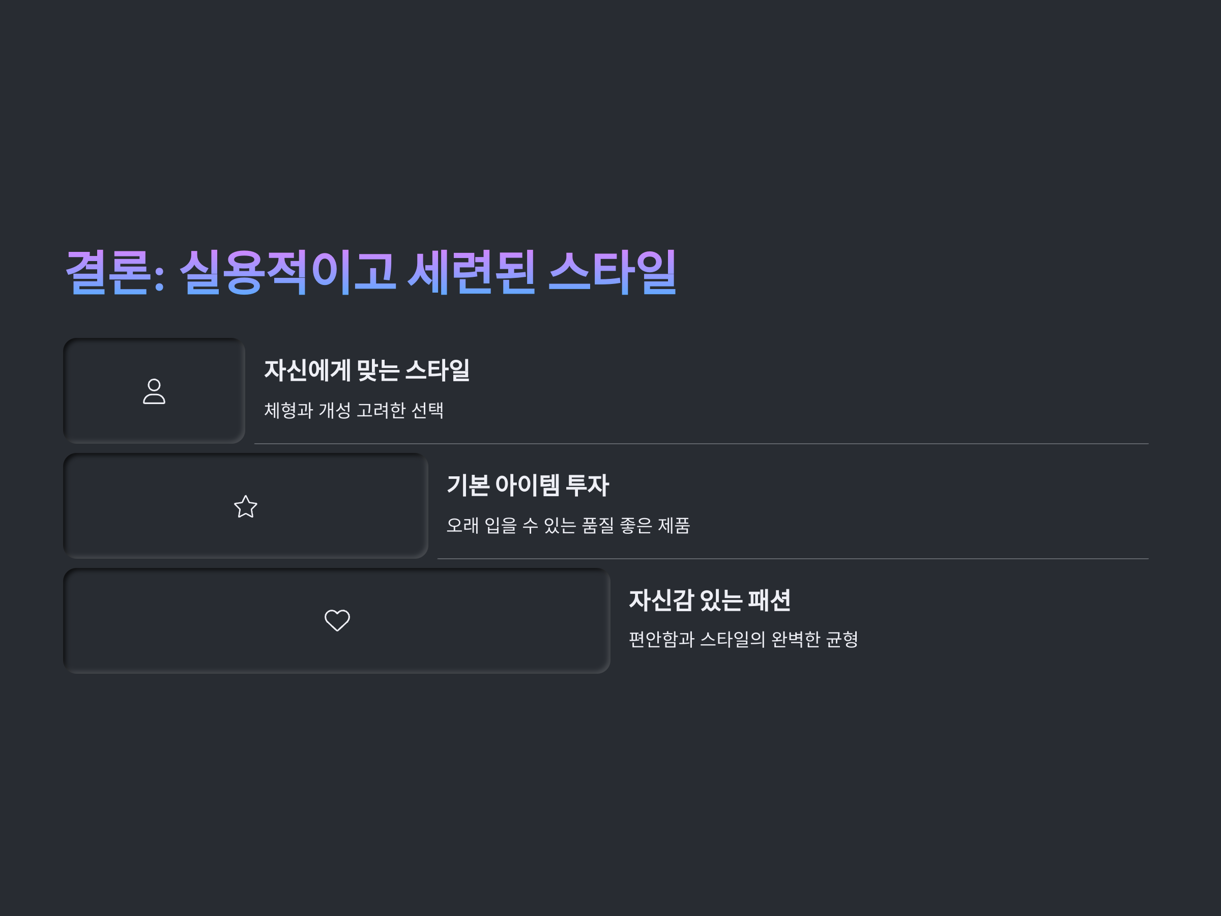 결론: 30대 패션은 실용적이고 세련된 스타일을 선택하는 것이 핵심