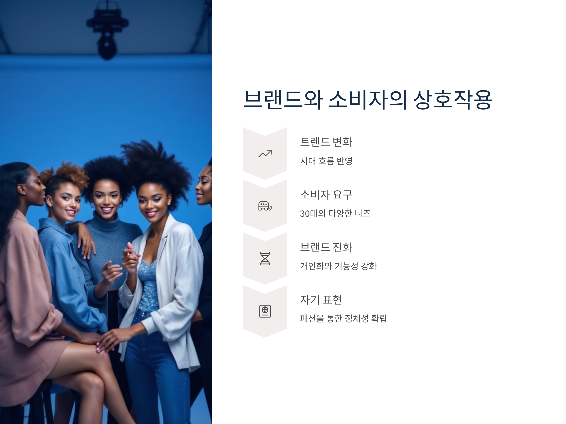 패션 브랜드들이 성공적으로 성장하기 위해서는 단순히 디자인이 뛰어난 것만으로는 부족합니다. 브랜드 철학과 가치가 뚜렷해야만 소비자들이 브랜드에 대한 신뢰를 가지게 되죠. 특히 30대는 디자인뿐만 아니라 브랜드의 가치와 아이덴티티에도 민감합니다.