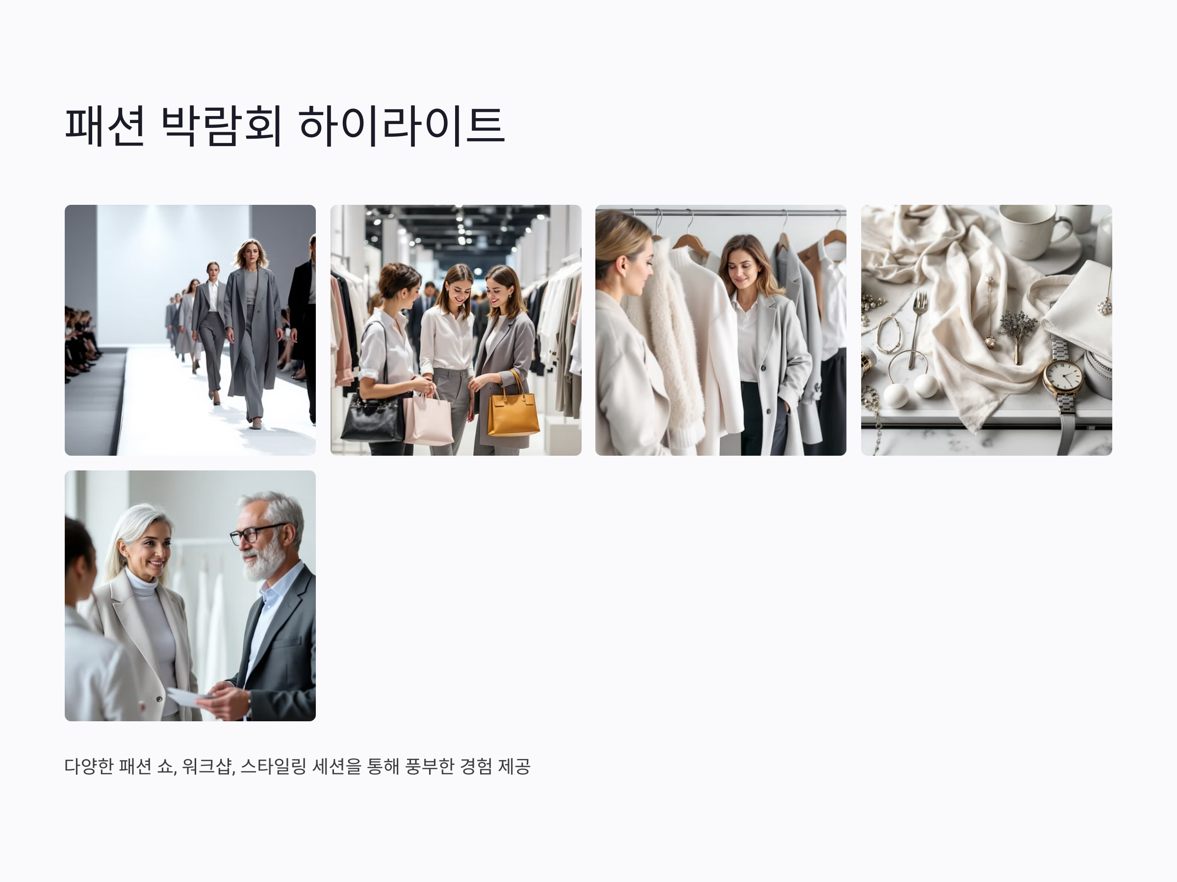 참가자들은 패션에 대한 새로운 시각을 얻고, 앞으로의 패션 스타일에 대해 더욱 자신감을 가질 수 있게 됩니다. 이처럼 40대 패션 박람회는 패션에 대한 고민을 덜어주고, 자신만의 스타일을 찾아주는 유익한 경험이 될 것입니다.
