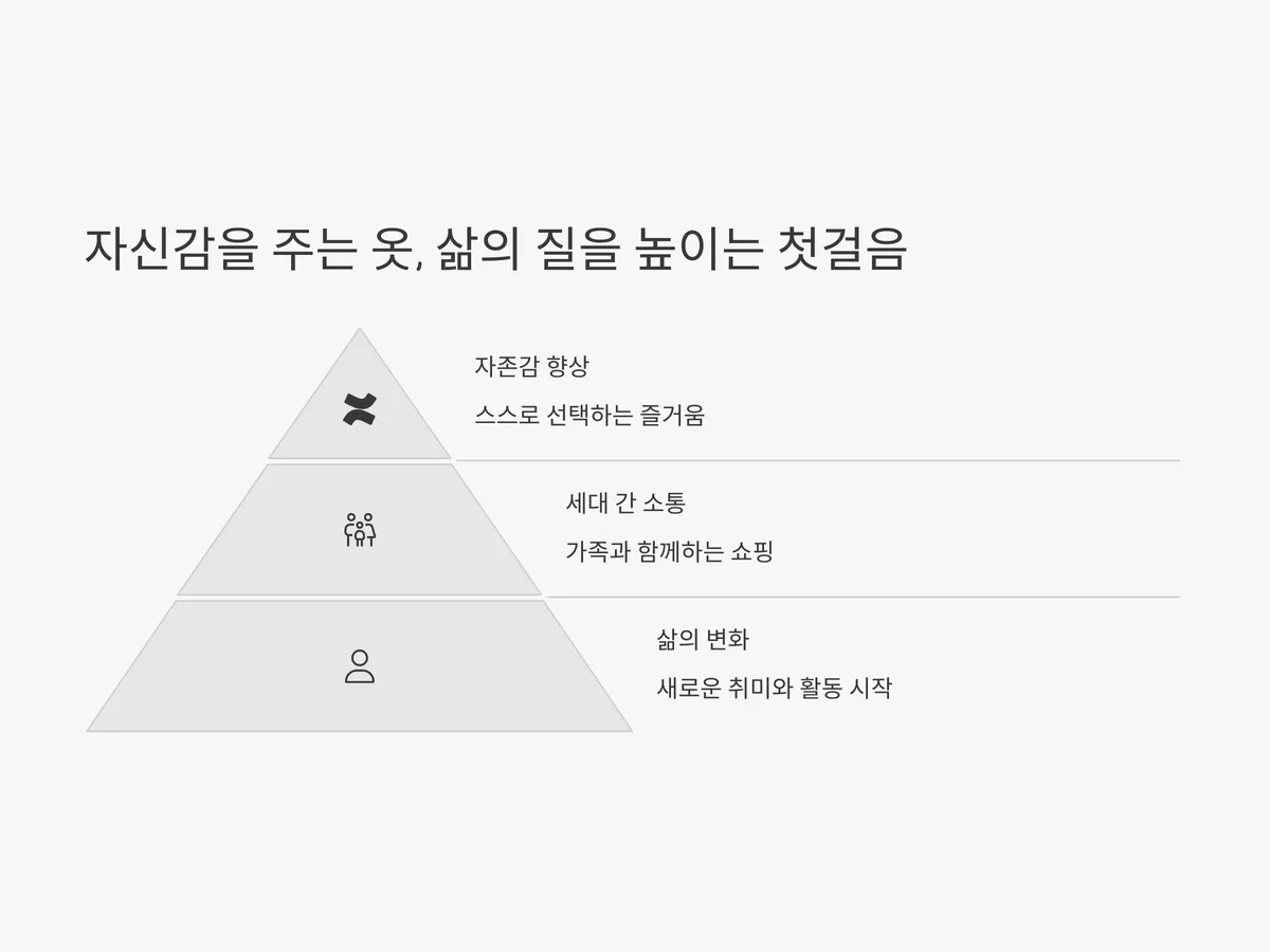 단순히 멋을 내기 위한 것이 아닌, 옷은 삶의 태도와도 직결됩니다. 80대가 되어도 스스로 옷을 고르고 스타일을 연출하는 과정은 자존감과 자기효능감을 높이는 데 큰 도움이 됩니다. 매일이 반복되는 일상 속에서 옷차림 하나 바뀌었을 뿐인데도 외출이 즐겁고, 사람을 만나는 일이 기대되는 경험으로 바뀔 수 있습니다.