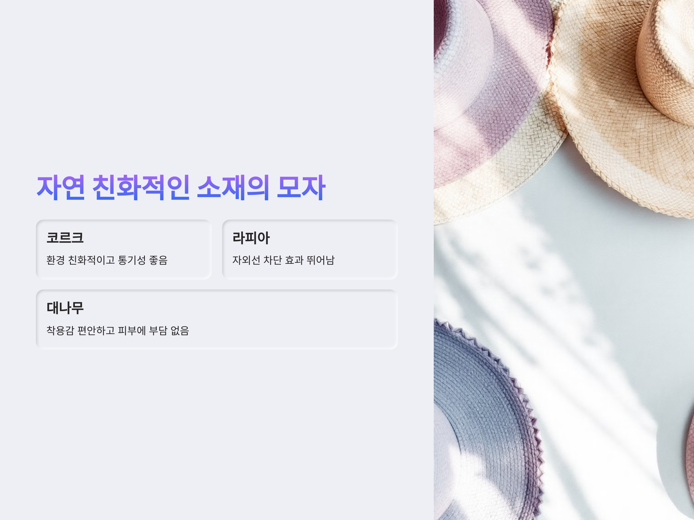 최근 80대 여성들 사이에서 가장 주목받고 있는 또 하나의 트렌드는 자연 친화적인 소재의 모자입니다. 특히, 자외선 차단 효과가 뛰어난 모자는 여름철 필수 아이템으로 자리 잡고 있습니다. 코르크, 라피아, 대나무 등 자연 소재로 만든 모자는 환경 친화적일 뿐만 아니라, 통기성이 좋아 여름철 착용하기에도 좋습니다.