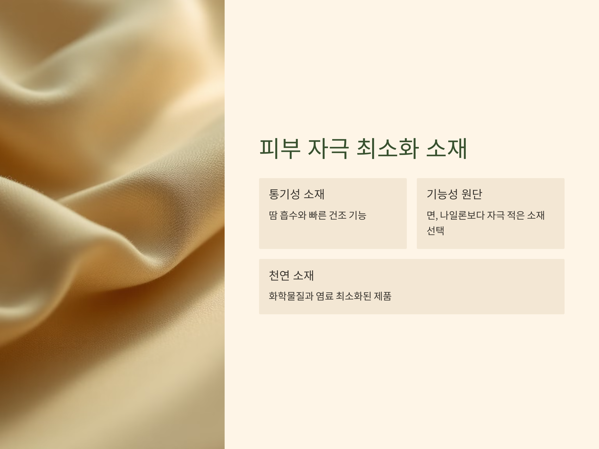 80대 이상의 연령대는 피부가 민감해지기 때문에, 스포츠웨어의 소재가 매우 중요합니다. 운동을 할 때 자주 땀을 흘리게 되는데, 땀을 흡수하고 빠르게 건조될 수 있는 통기성이 좋은 소재가 이상적입니다. 면, 나일론, 스판덱스와 같은 소재는 피부에 자극을 줄 수 있으므로, 이보다 부드럽고 자극이 적은 기능성 소재를 선택하는 것이 좋습니다.